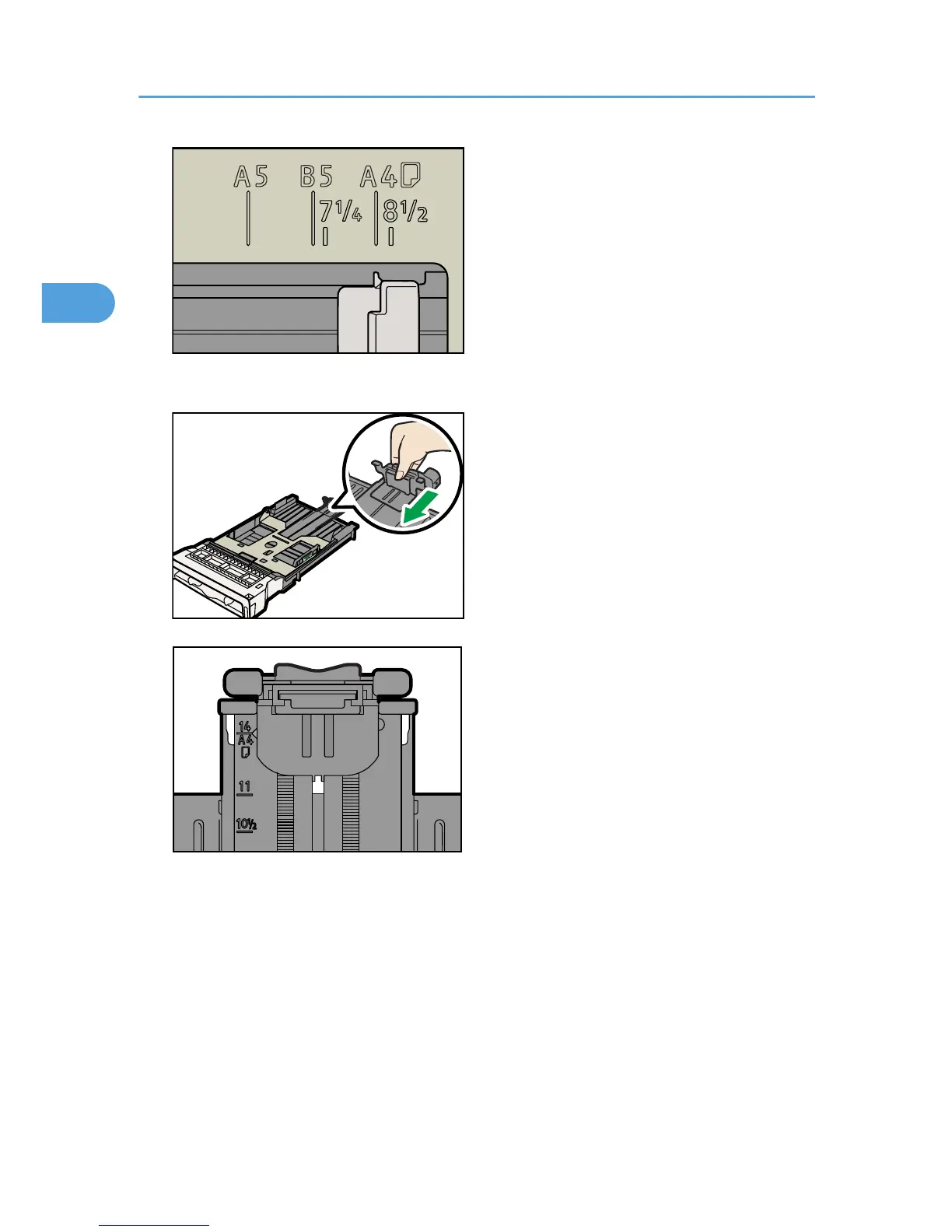6. Pinch the front end paper guide and slide it inward to match the Legal paper size.