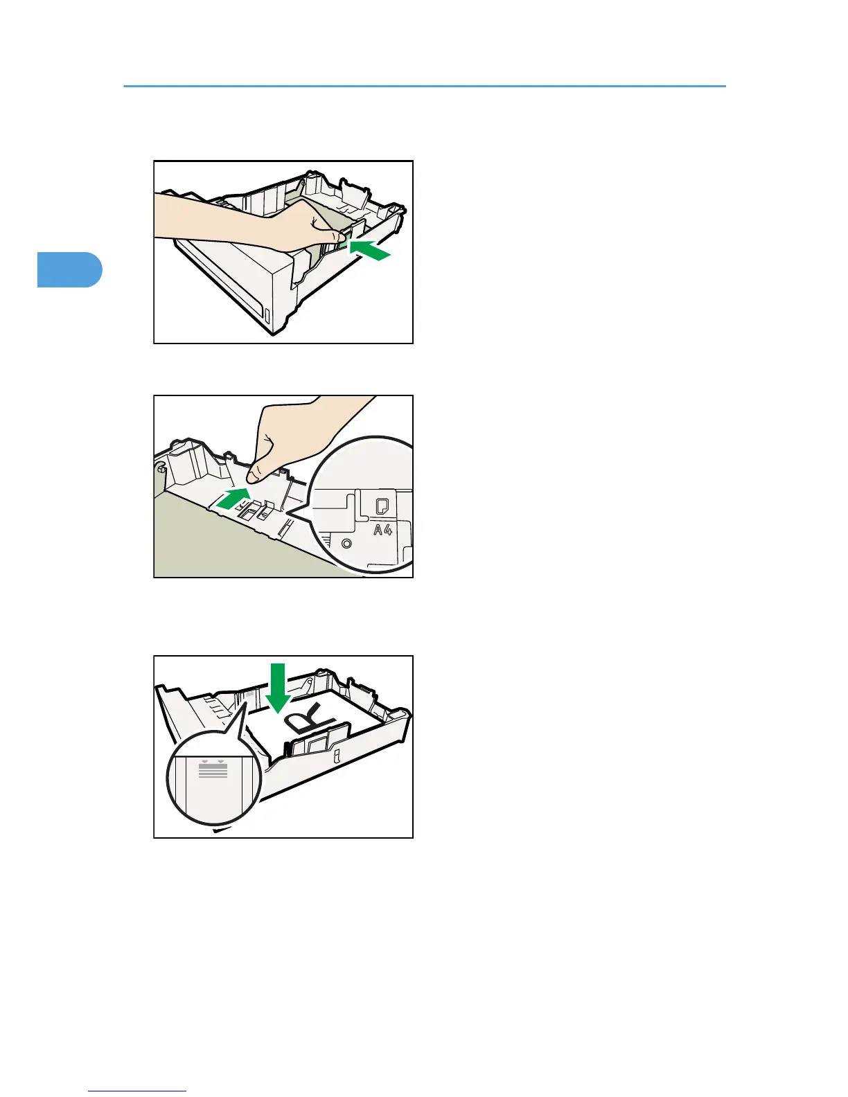 Make sure paper is not stacked higher than the upper limit (upper line) marked inside the tray.