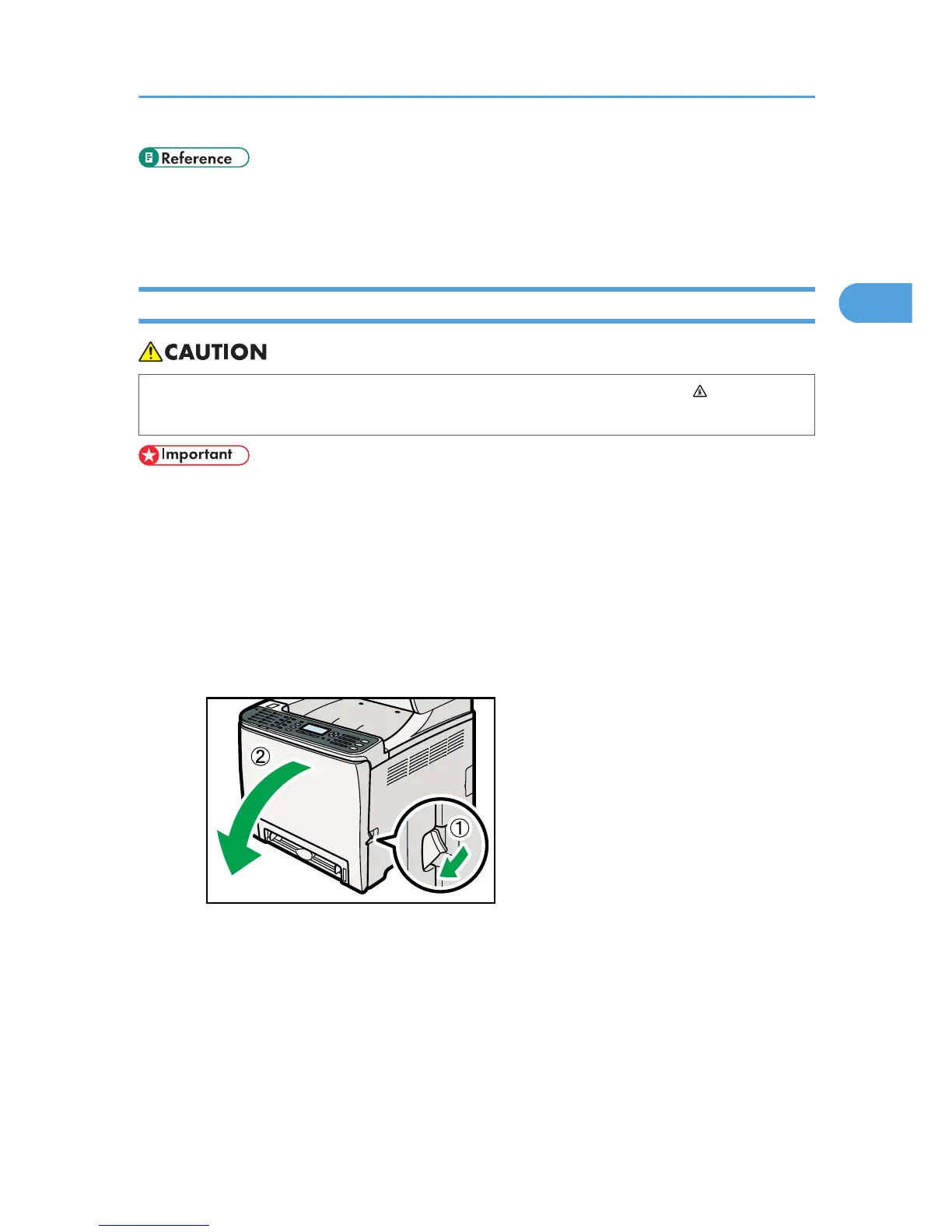 • The inside of this machine becomes very hot. Do not touch the parts labeled " " (indicating a