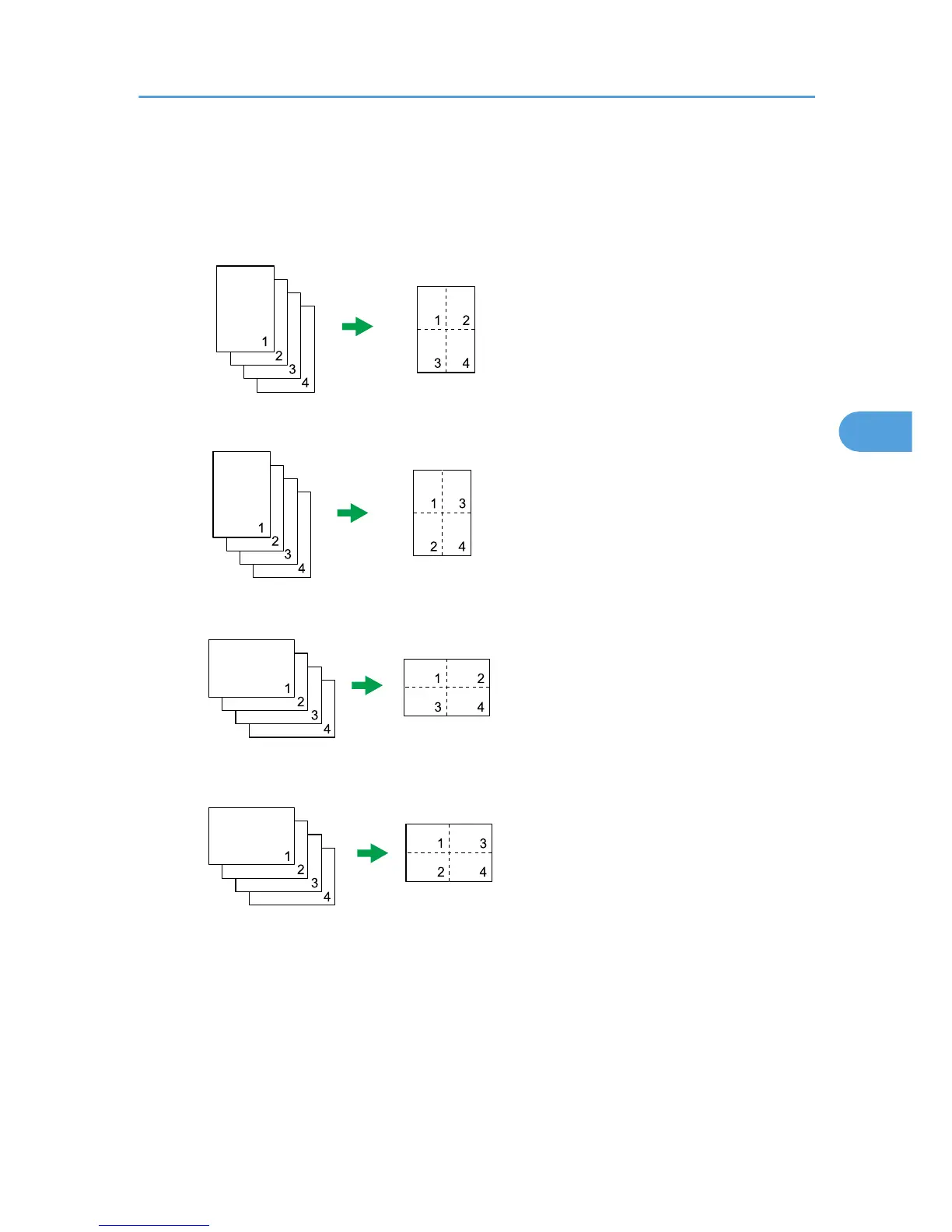 You can copy four pages of an original onto a single sheet of photocopied paper. Depending on