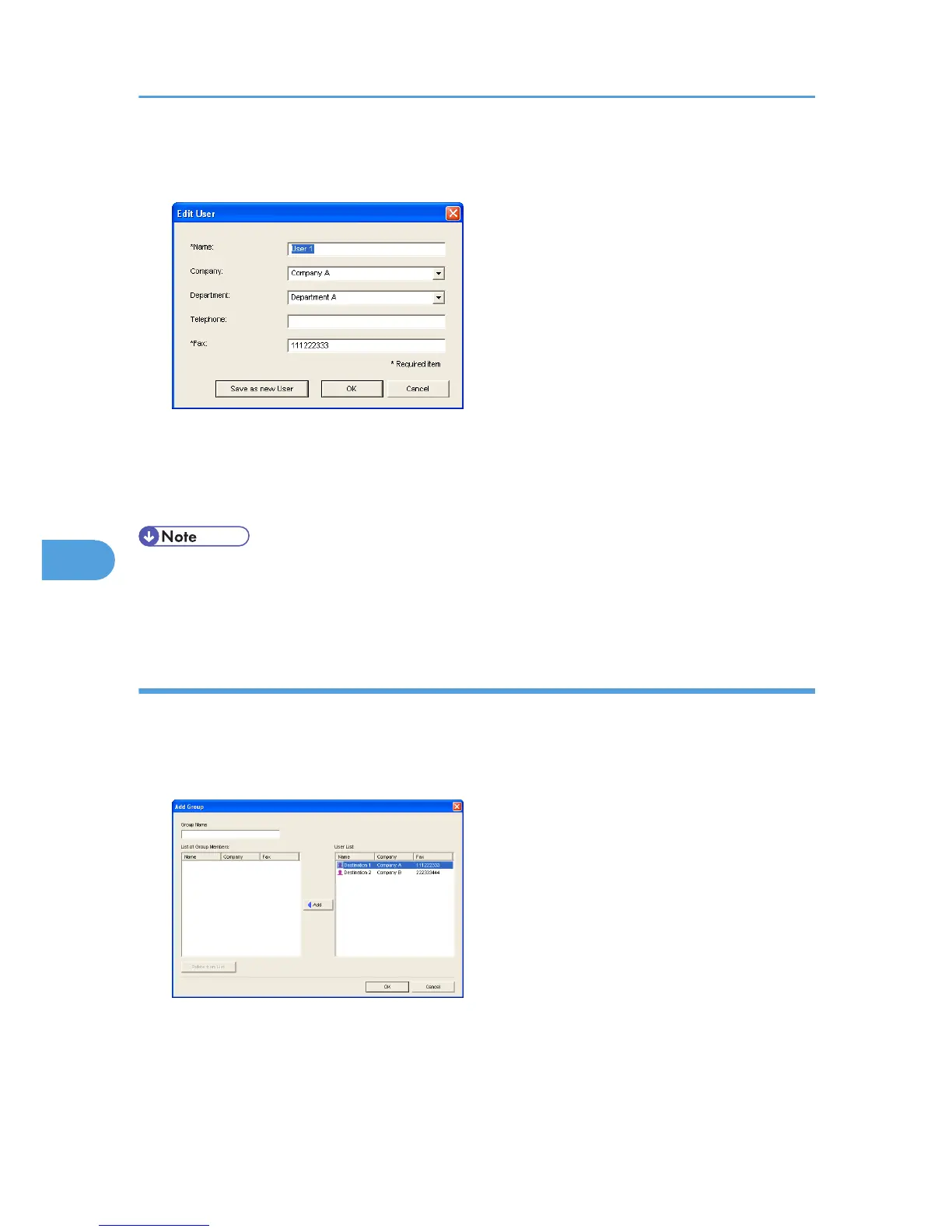 • A message appears if the name you specified already exists in the LAN-Fax Address Book. To