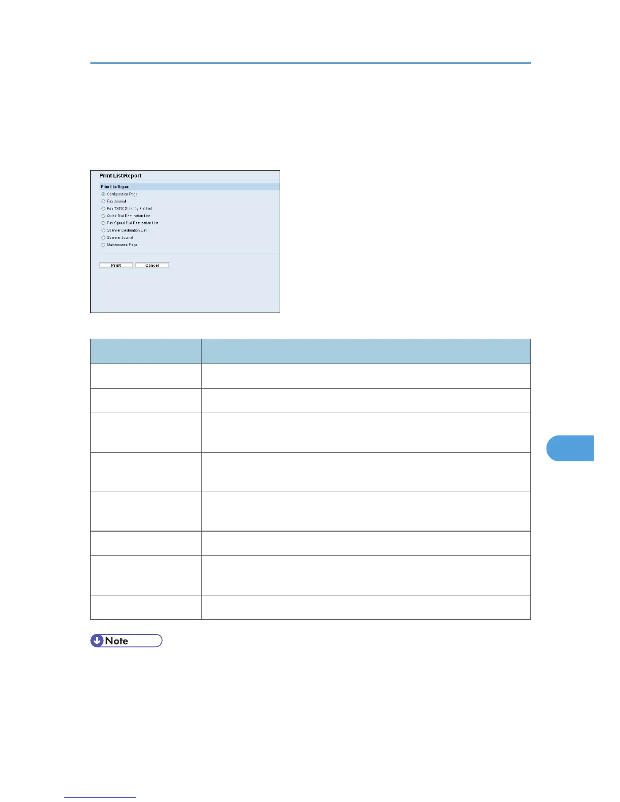 • Reports cannot be printed via Web Image Monitor if other jobs are printing. Before printing