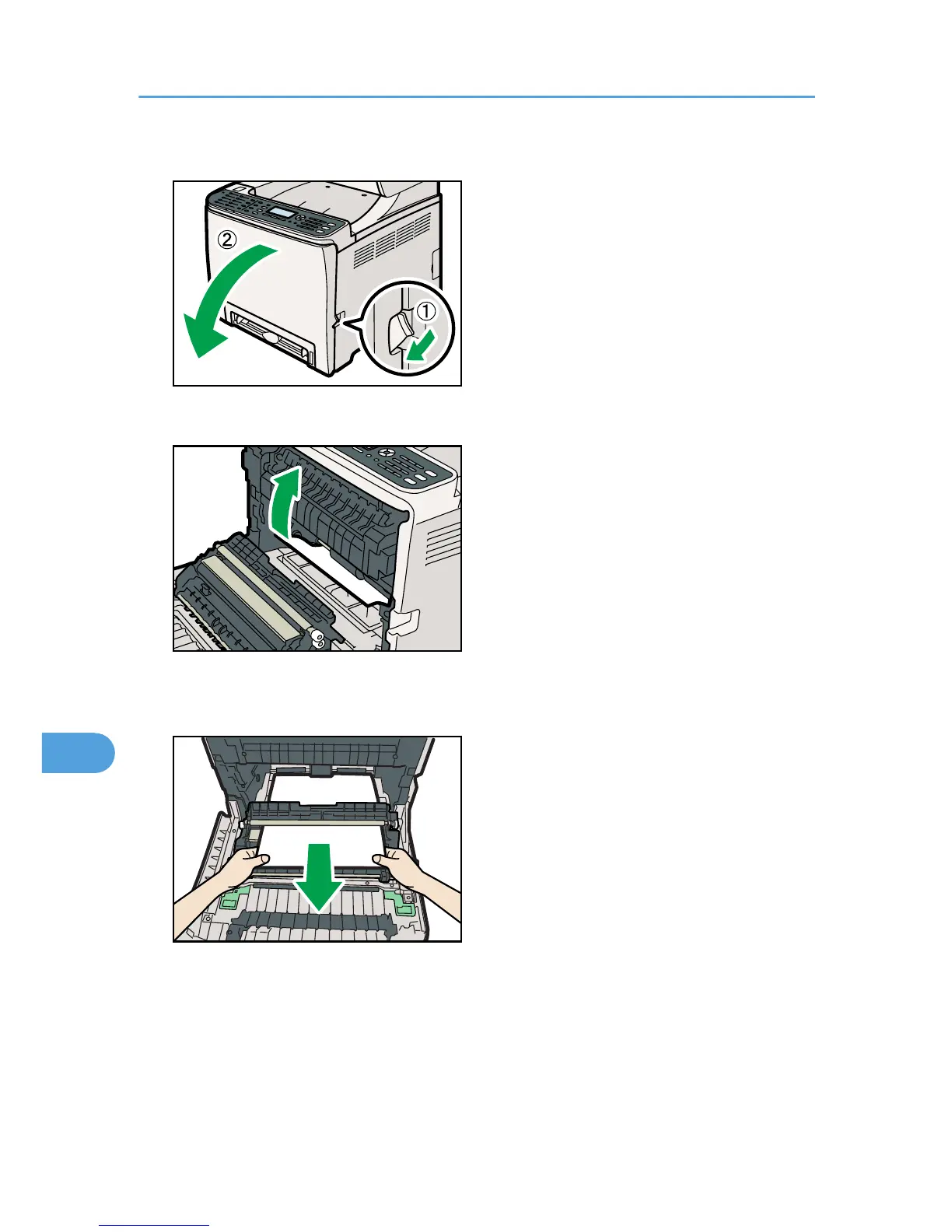 1. Pull the opening lever on the front cover, and then carefully lower the front cover.