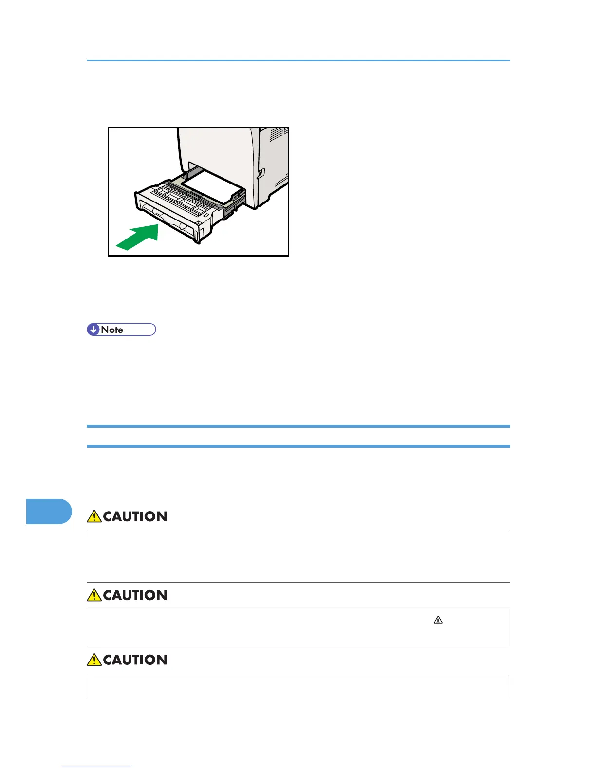 • Do not pull out the paper tray forcefully. If you do, the tray might fall and cause an injury.