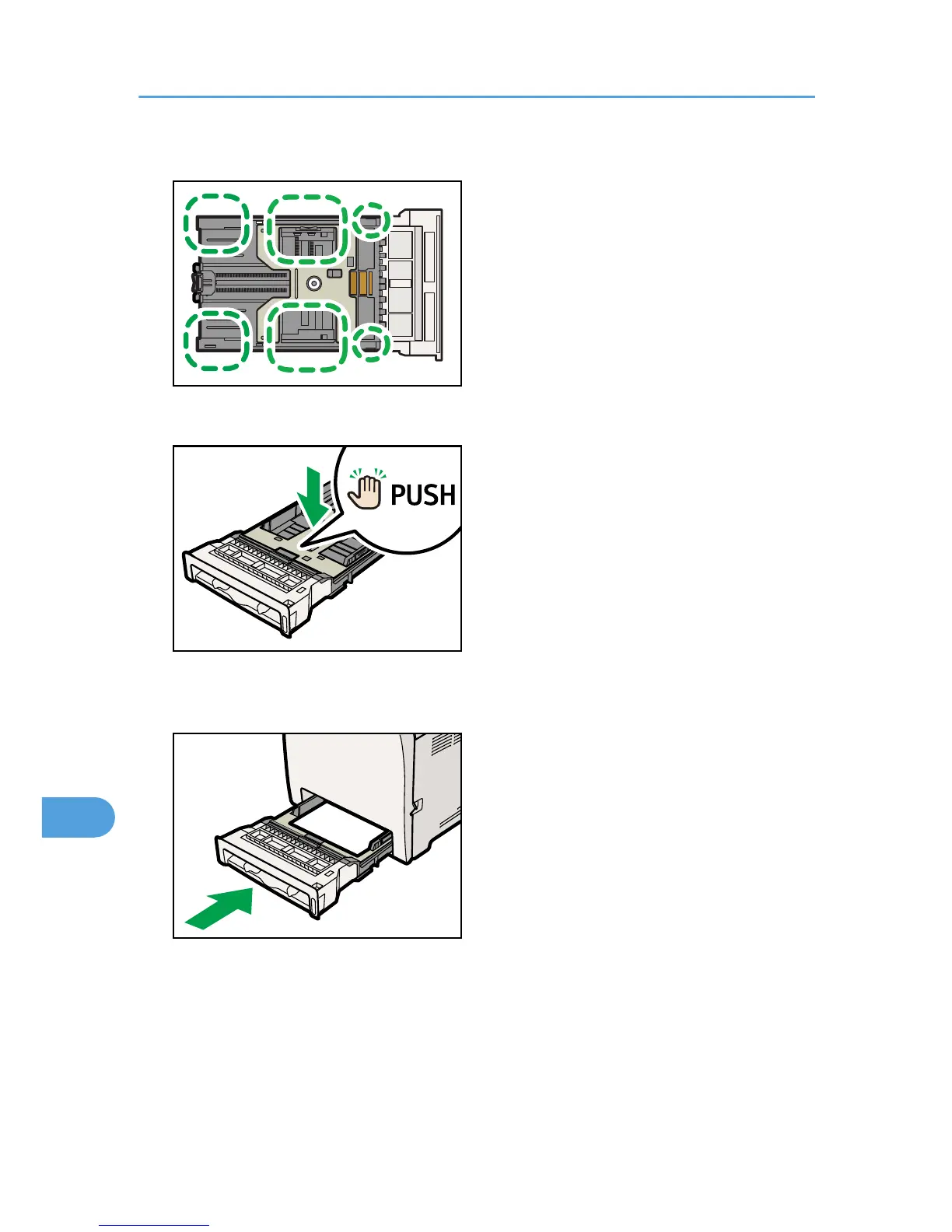 6. Reload the removed paper into the tray, and then push the tray carefully into the machine