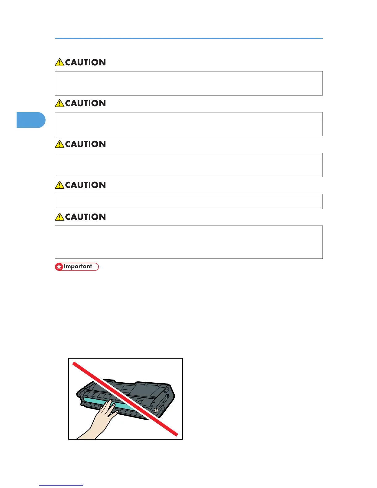 • If toner or used toner is swallowed, dilute by drinking a large amount of water. Consult a doctor