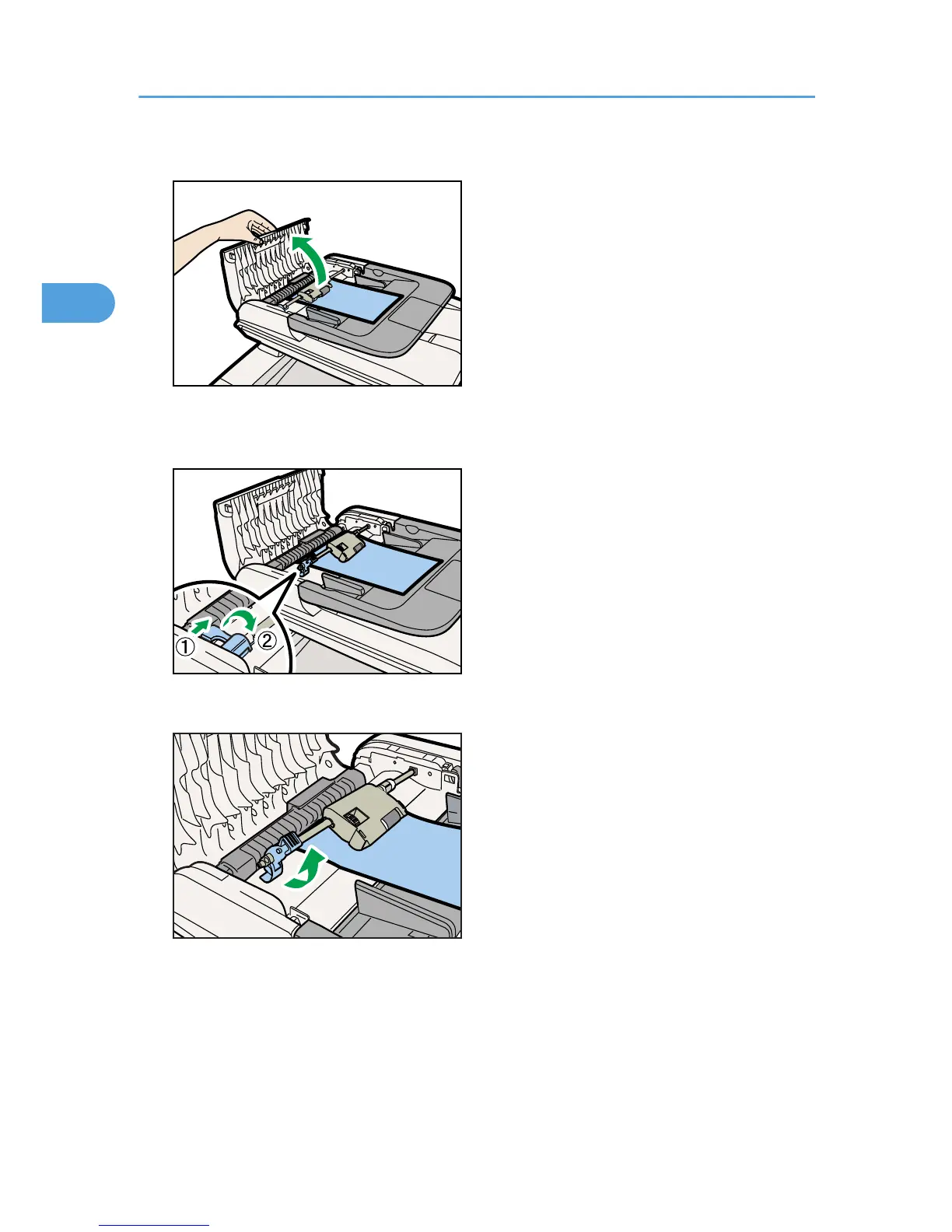 5. Move the lever slightly to the machine rear, and then pull it up to unlock the paper feed