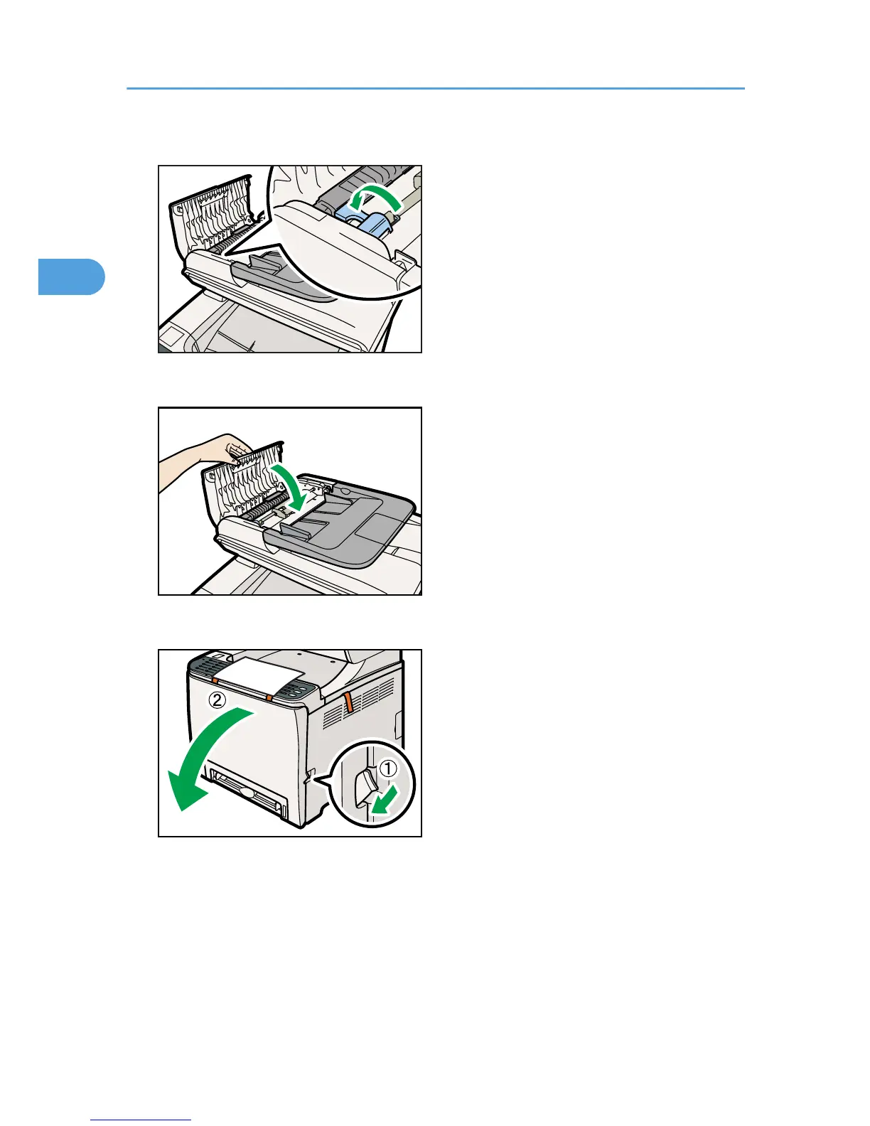 12. Pull the opening lever on the front cover, and then carefully lower the front cover.