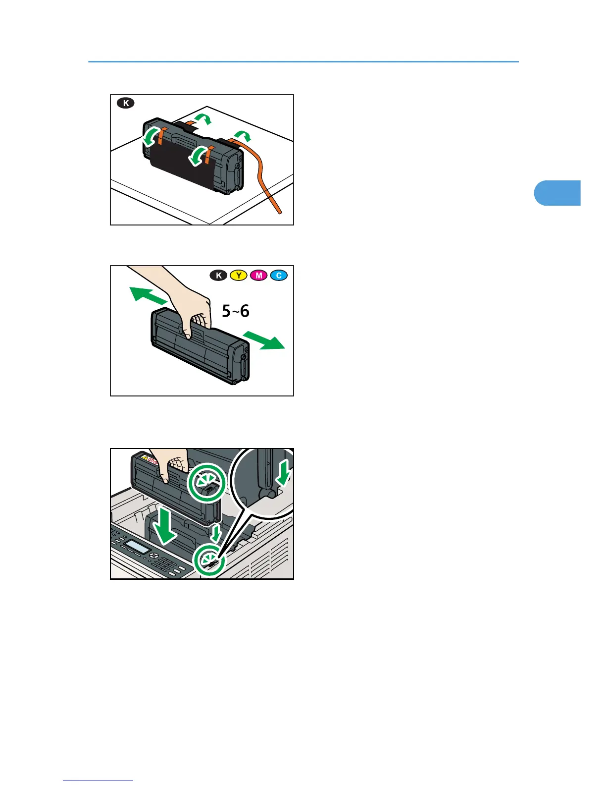 19. Check the toner color and corresponding location, and then carefully insert the print