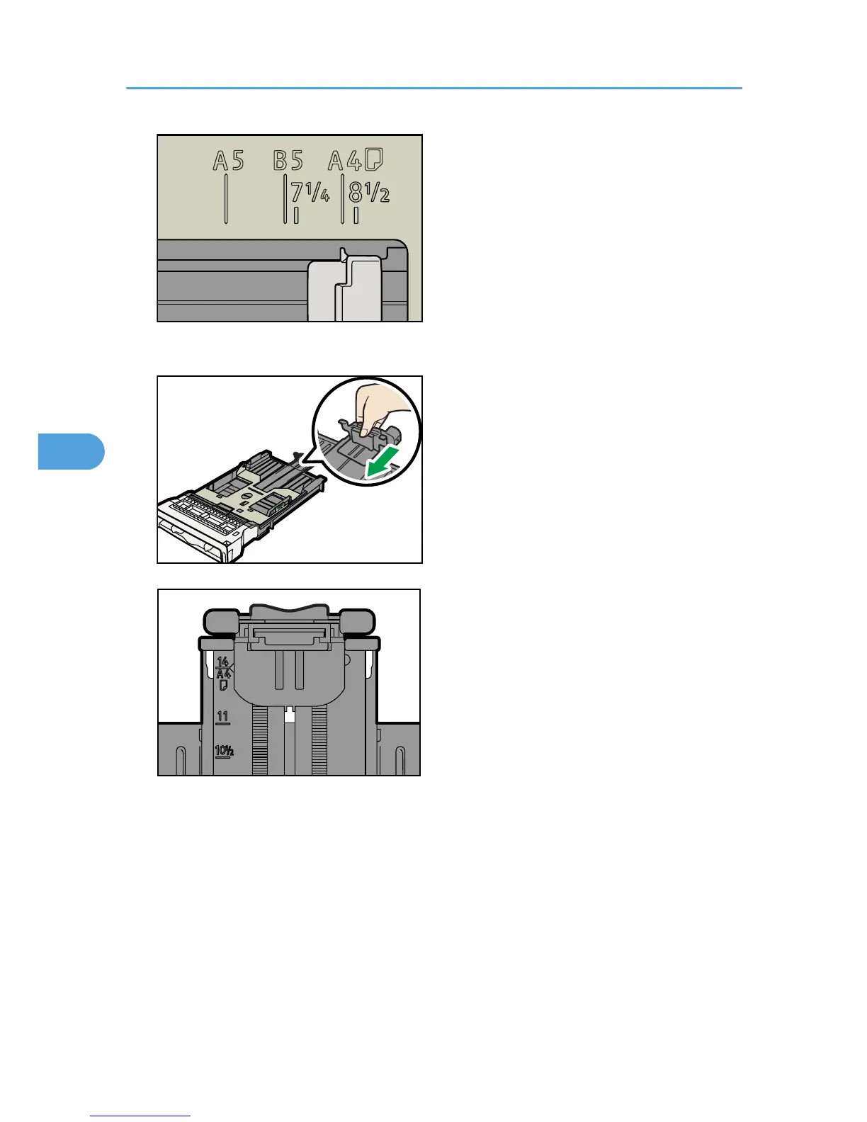 6. Pinch the front end paper guide and slide it inward to match the legal paper size.