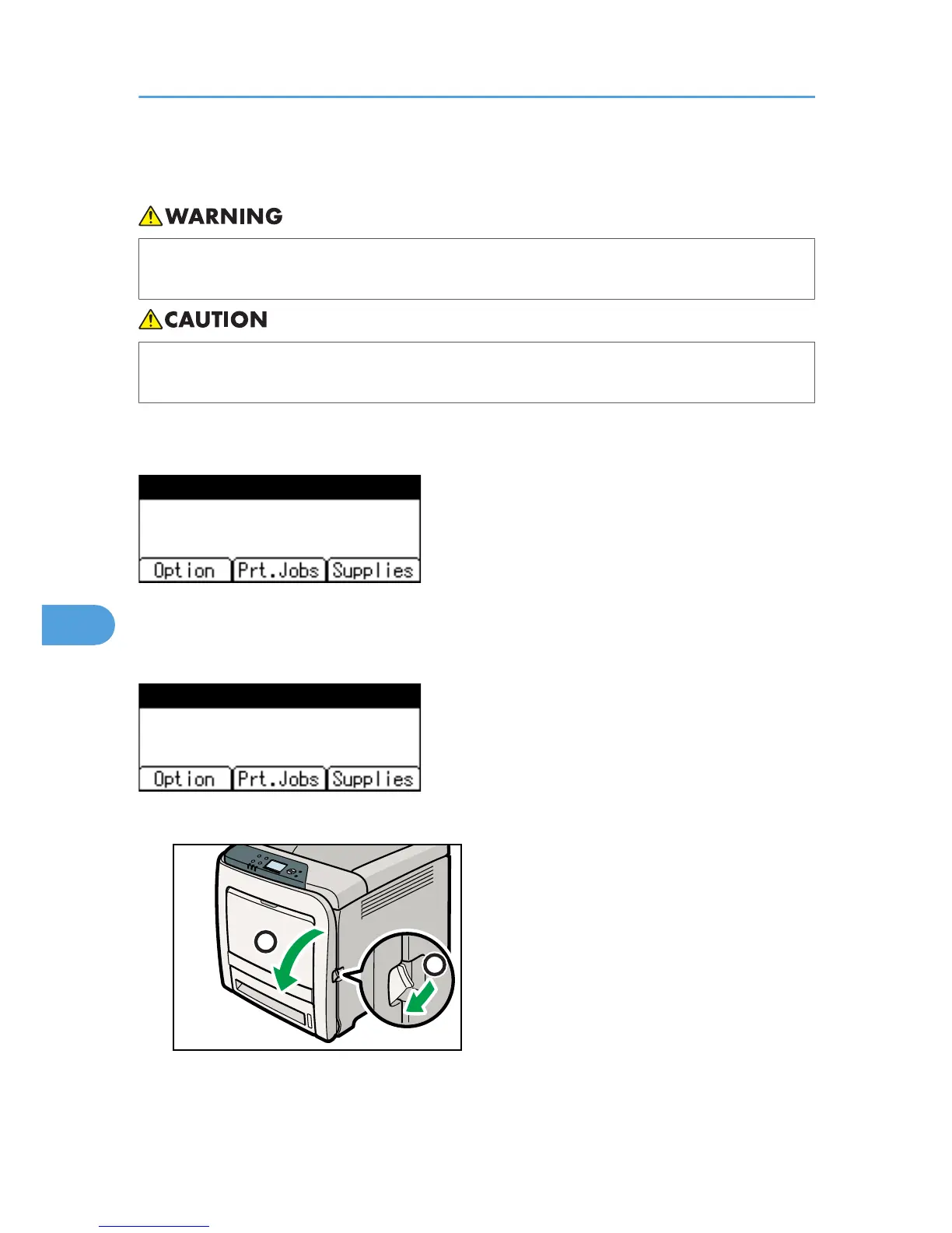 • The inside of the machine could be very hot. Do not touch the parts with a label indicating the