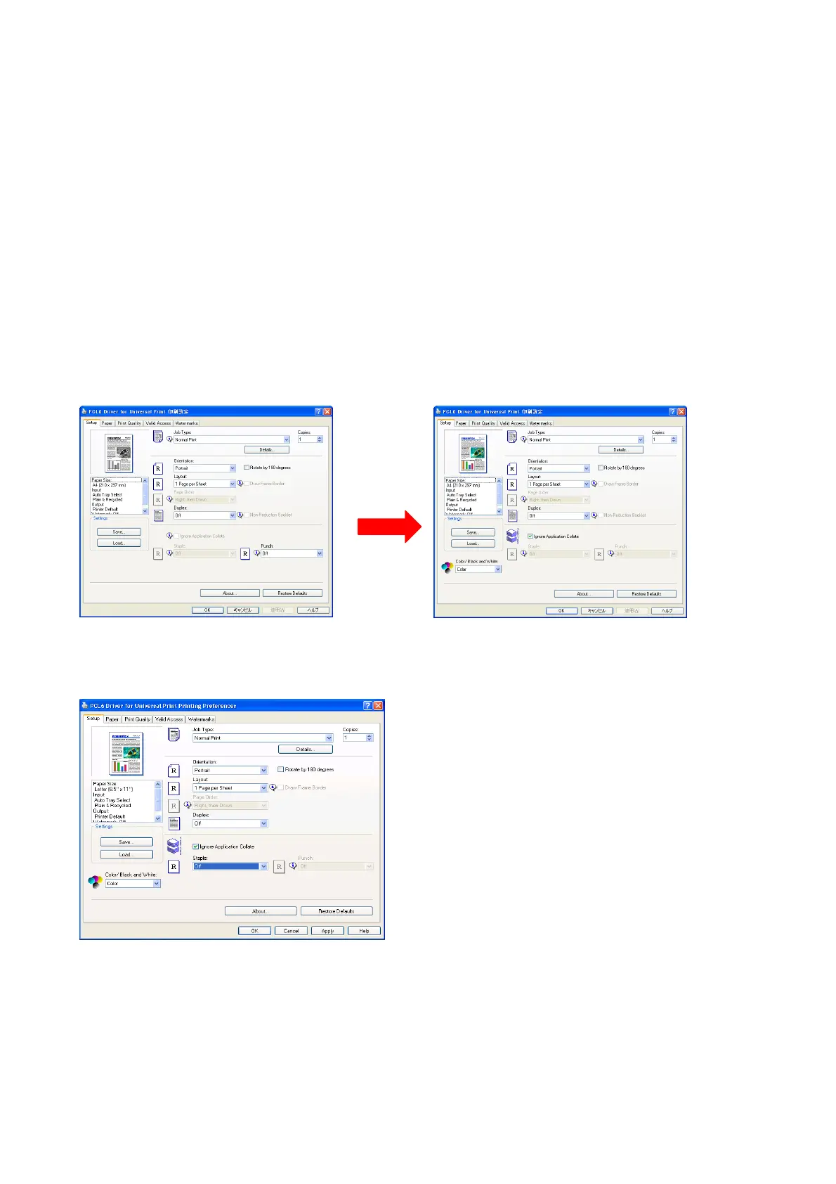 If the target machine is not an applicable model, the driver UI changes in accordance with the MIB.