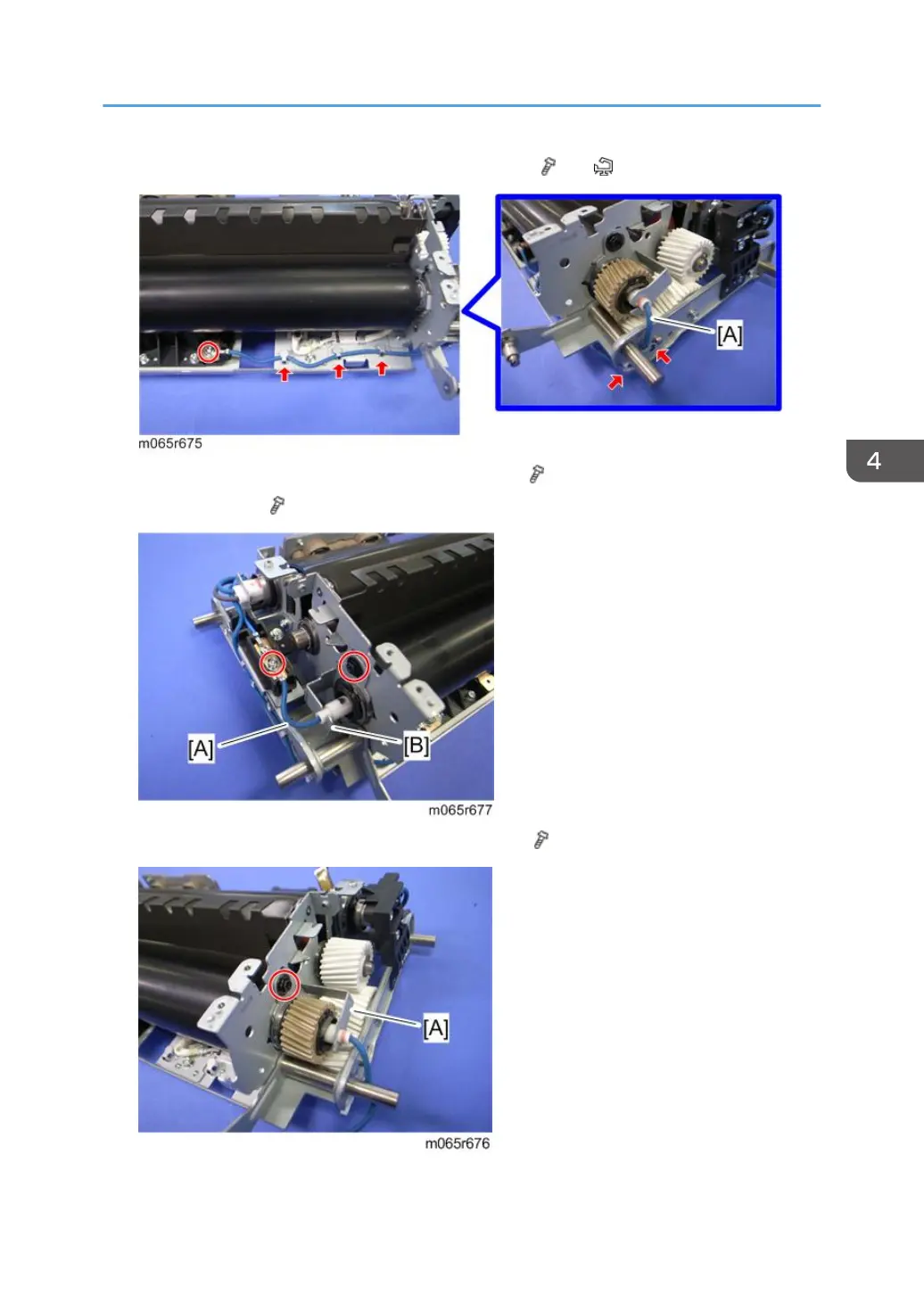 6. Release the fusing lamp harness [A] at the right side ( x 1, x 5).