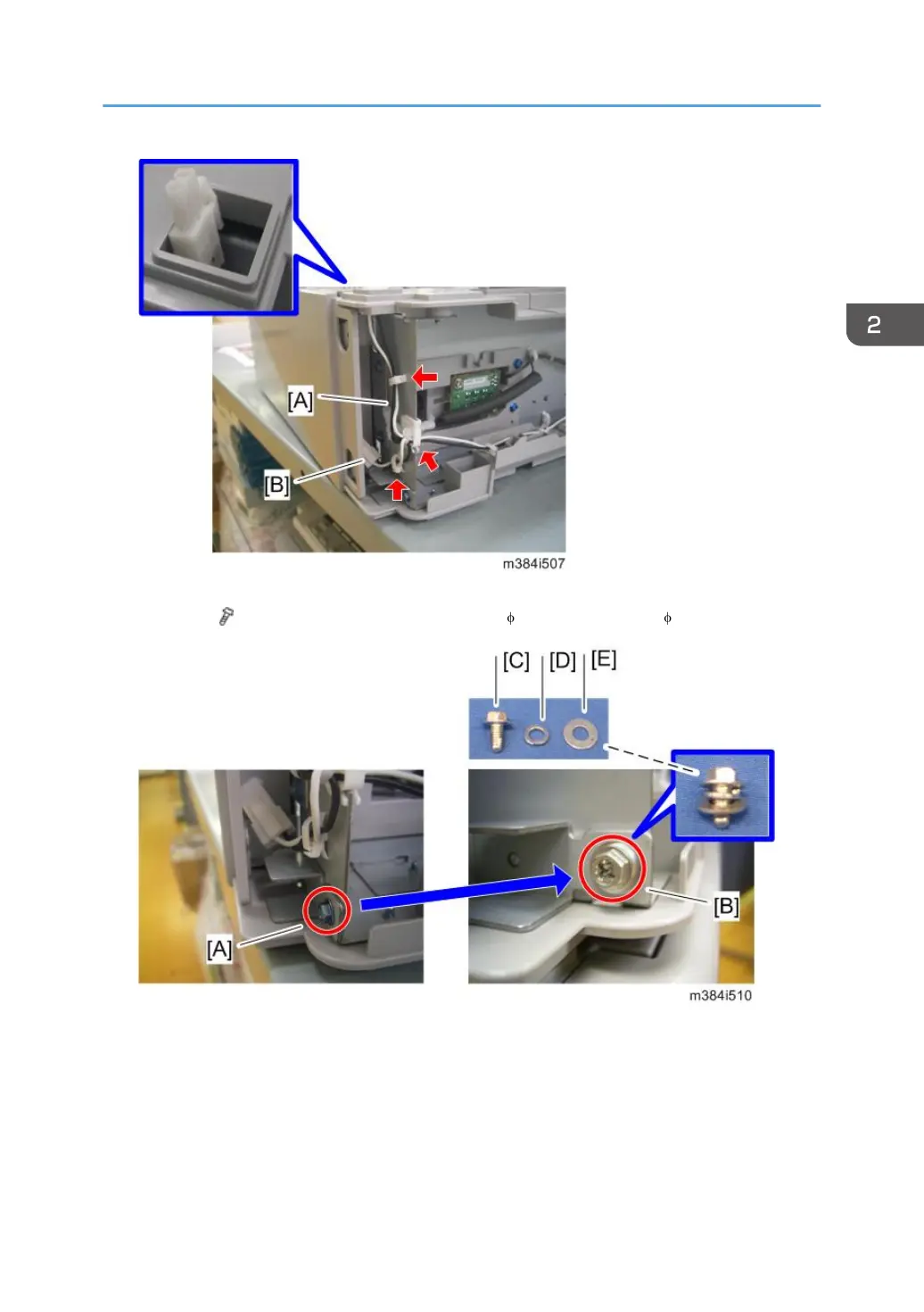 screw [B] ( x 1 (M3x8) [C], spring washer x 1 ( 3) [D], washer x 1 ( 3) [E]).