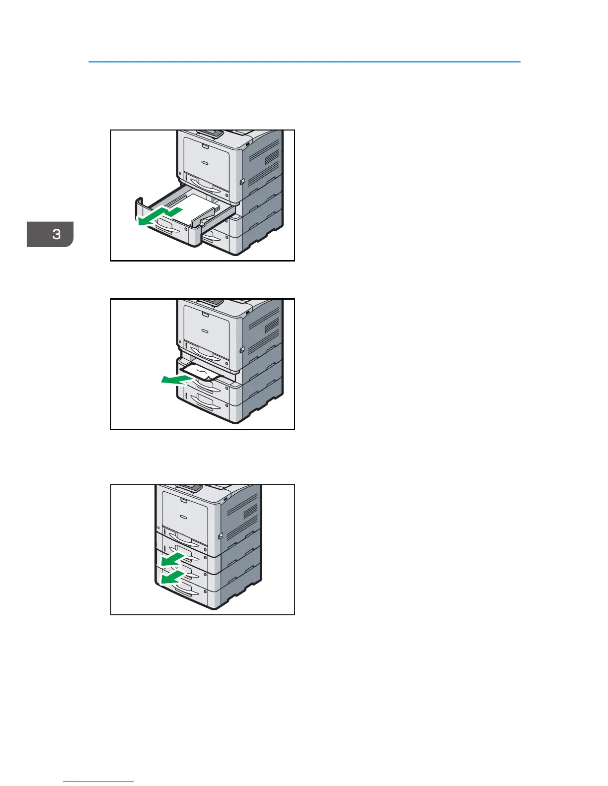 If the paper is jammed in multiple trays, pull out all trays in which it is caught, and then remove the