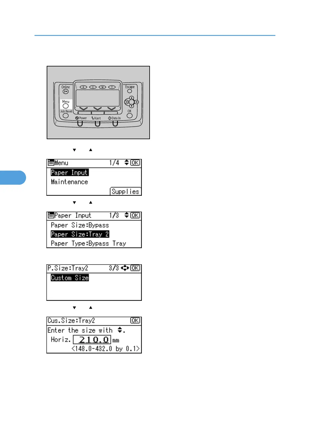 3. Press the [ ] or [ ] key to select [Paper Size: Tray 2], and then press the [OK] key.