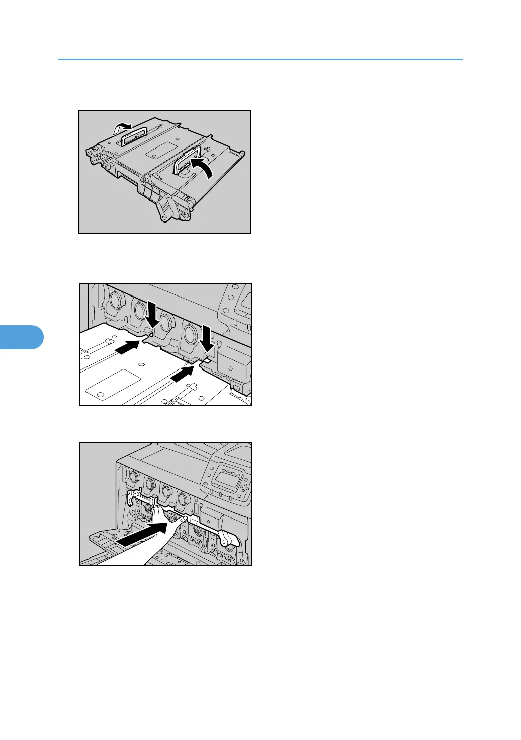 13. Lower the handles, and then push the front of the transfer unit to fully insert it into the printer.