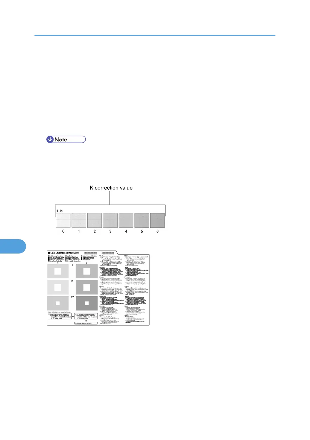 • Hold the correction value (0 to 6) for “K” of the correction value setting sheet over the color