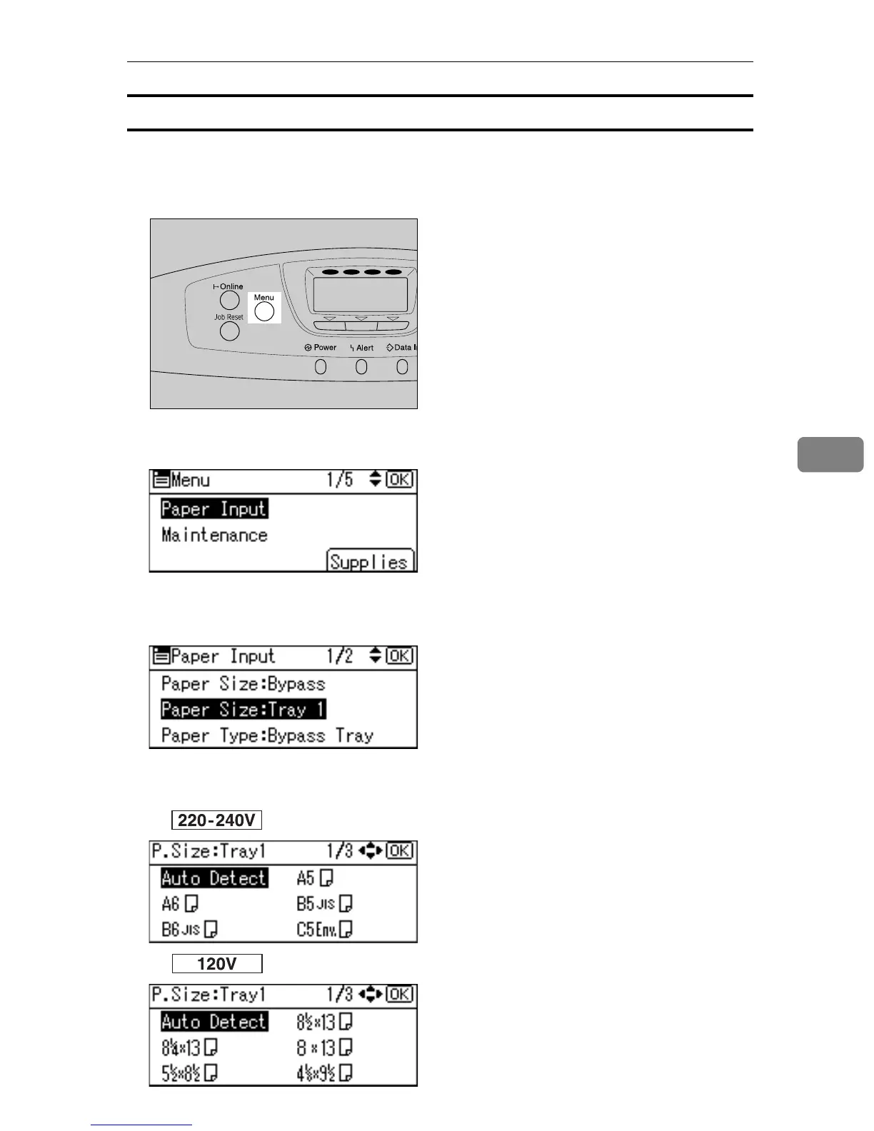 C Select [Paper Size: (tray name)] using {T} or {U}, and then press the {OK} key.
