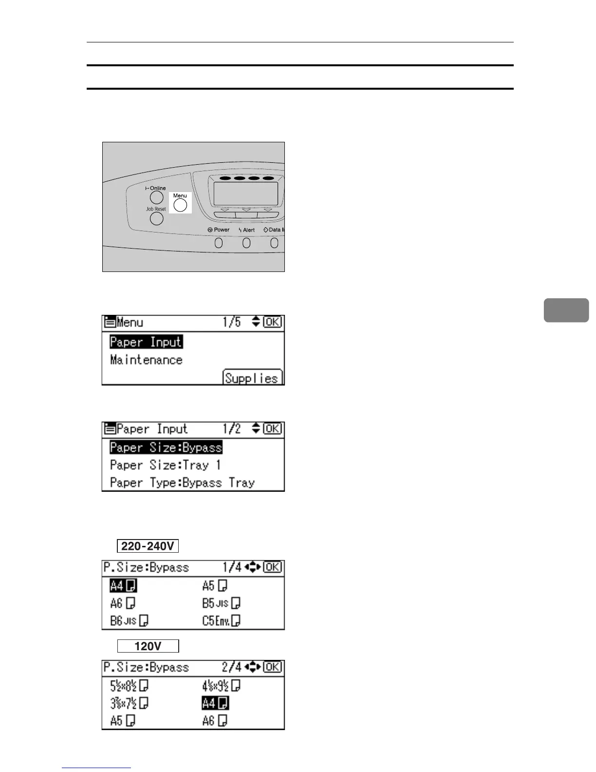 C Select [Paper Size: Bypass] using {T} or {U}, and then press the {OK} key.