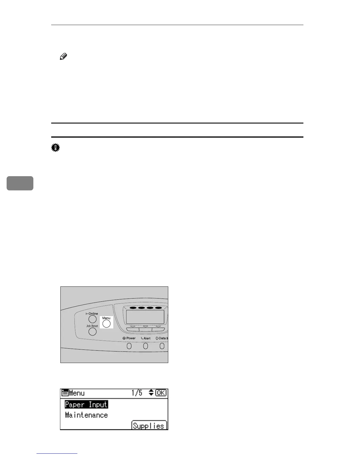 B Select [Paper Input] using {T} or {U}, and then press the {OK} key.