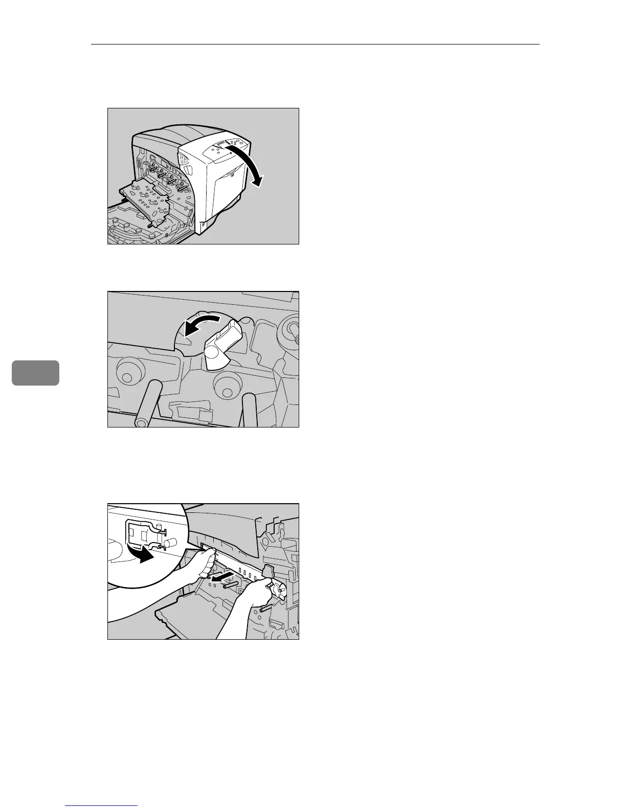 E Turn the green lever of the transfer unit counterclockwise to unlock the unit.