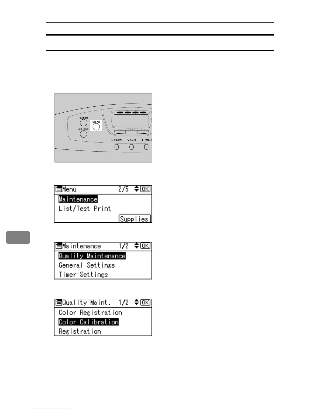 D Select [Colour Calibration] using {T} or {U}, and then press the {OK} key.