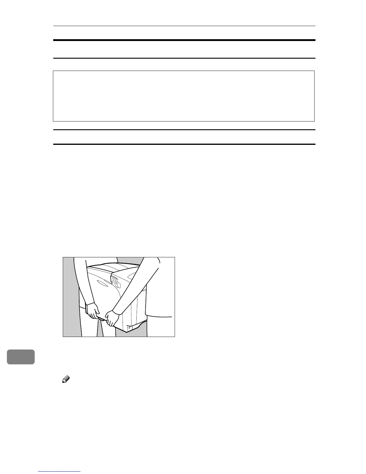 ❒ Be sure to move the printer horizontally. To prevent toner from scattering,