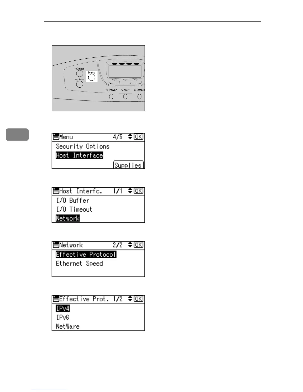 D Select [Effective Protocol] using {T} or {U}, and then press the {OK} key.