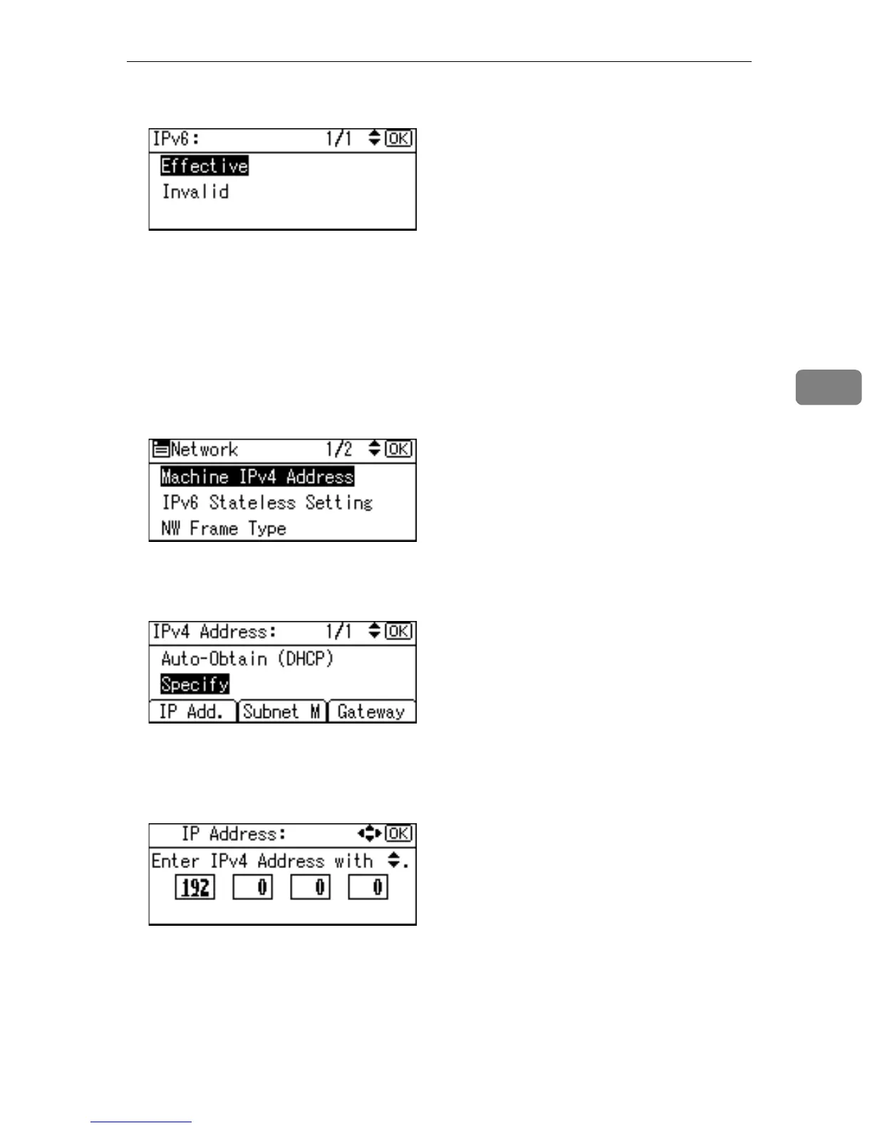 H If you use IPv4, assign the IPv4 address to the printer. Select [Machine IPv4