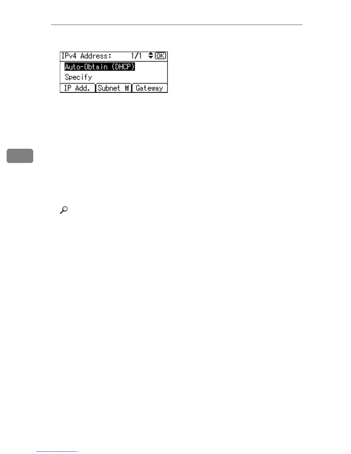E Select [Auto-Obtain (DHCP)] using {T} or {U}, and then press the {OK} key.
