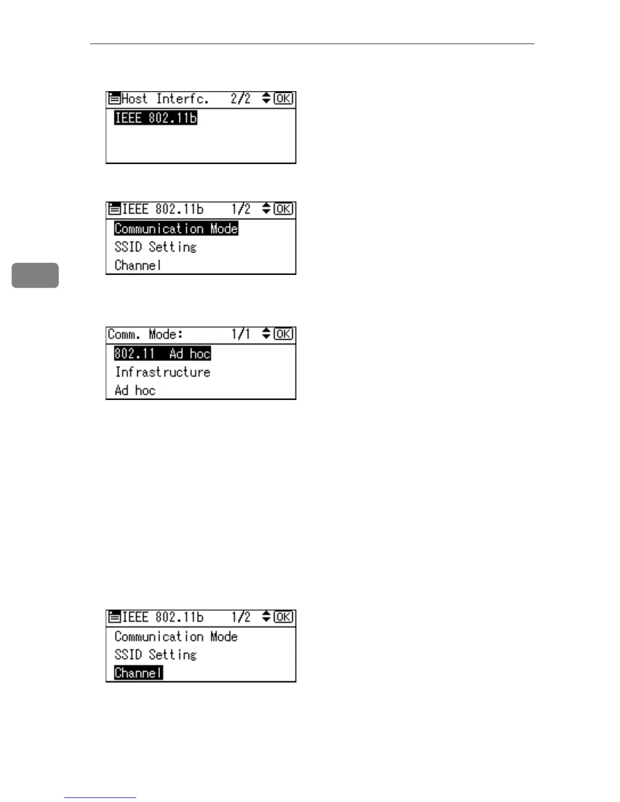 C Select [IEEE 802.11b] using {T} or {U}, and then press the { OK} key.