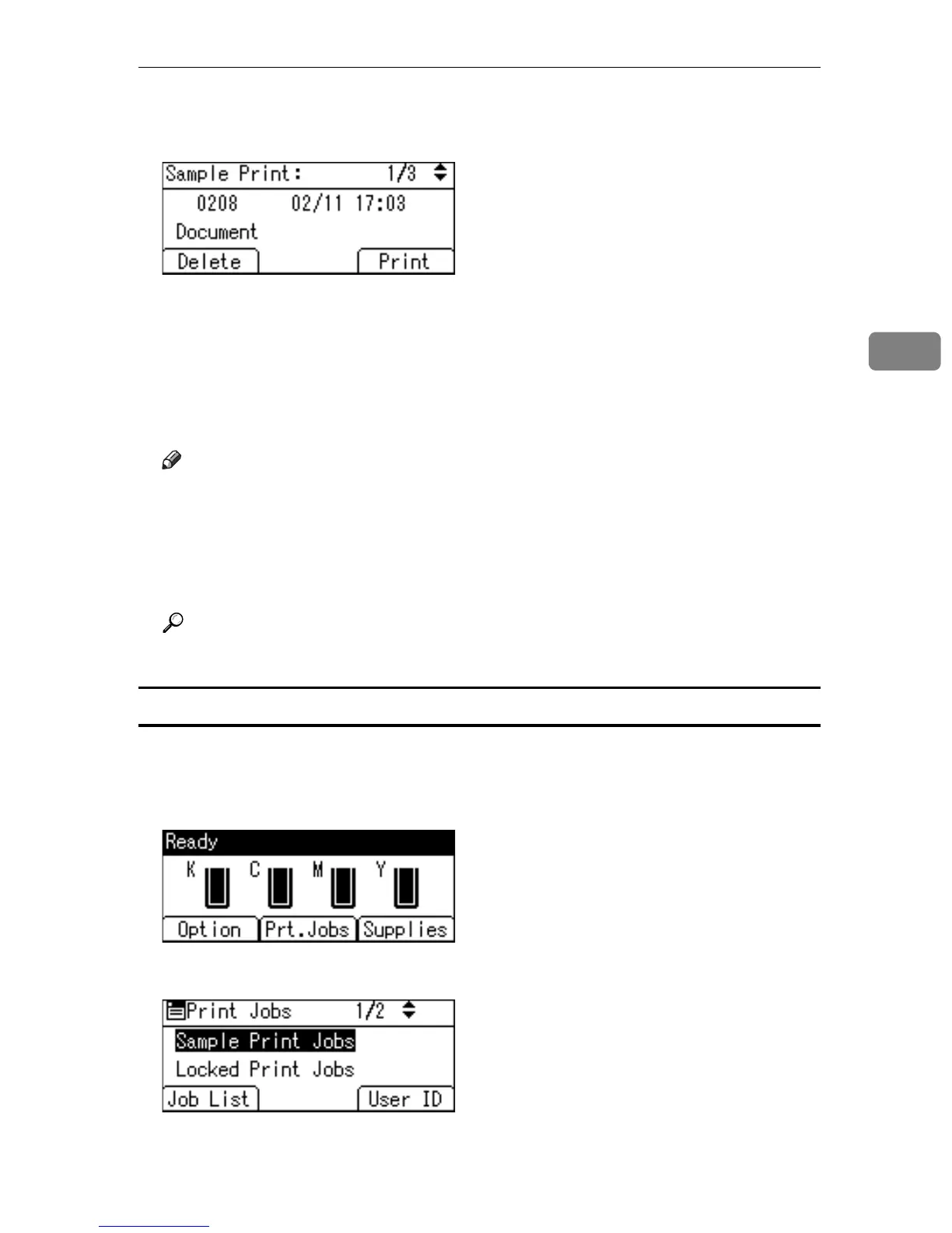B Select [Sample Print Jobs] using the {U} or {T} key, and then press [Job List].
