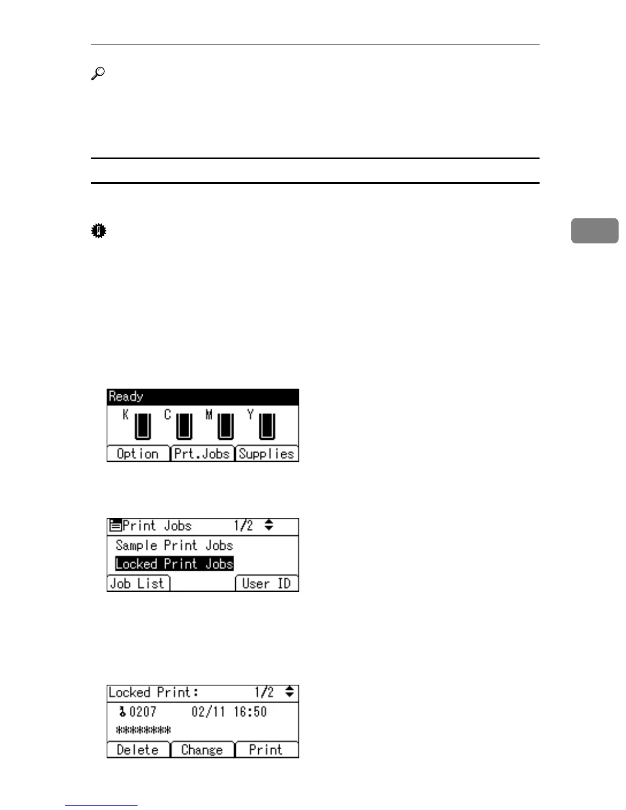 D Select [Locked Print Jobs] using the {U} or {T} key, and then press [Job List].