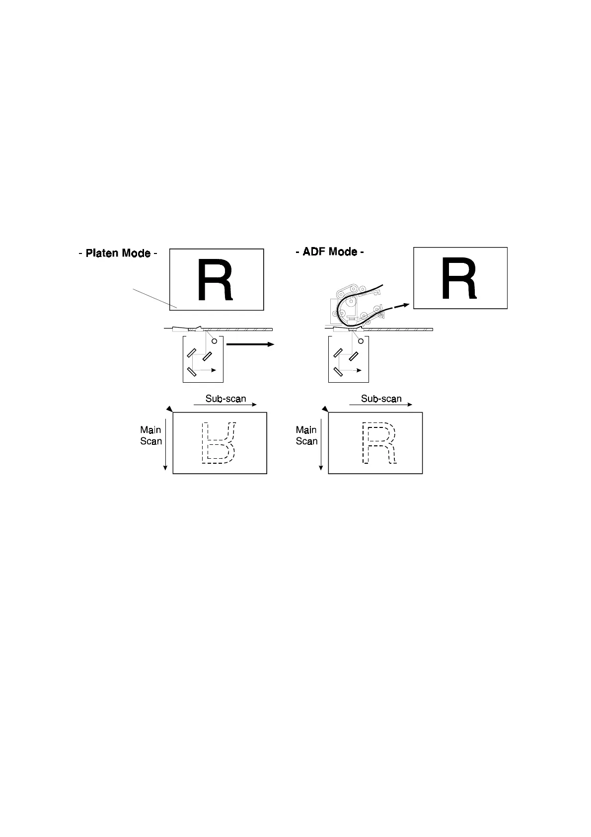 scan start position is at corner [A], and the scanner moves down the page. In ADF