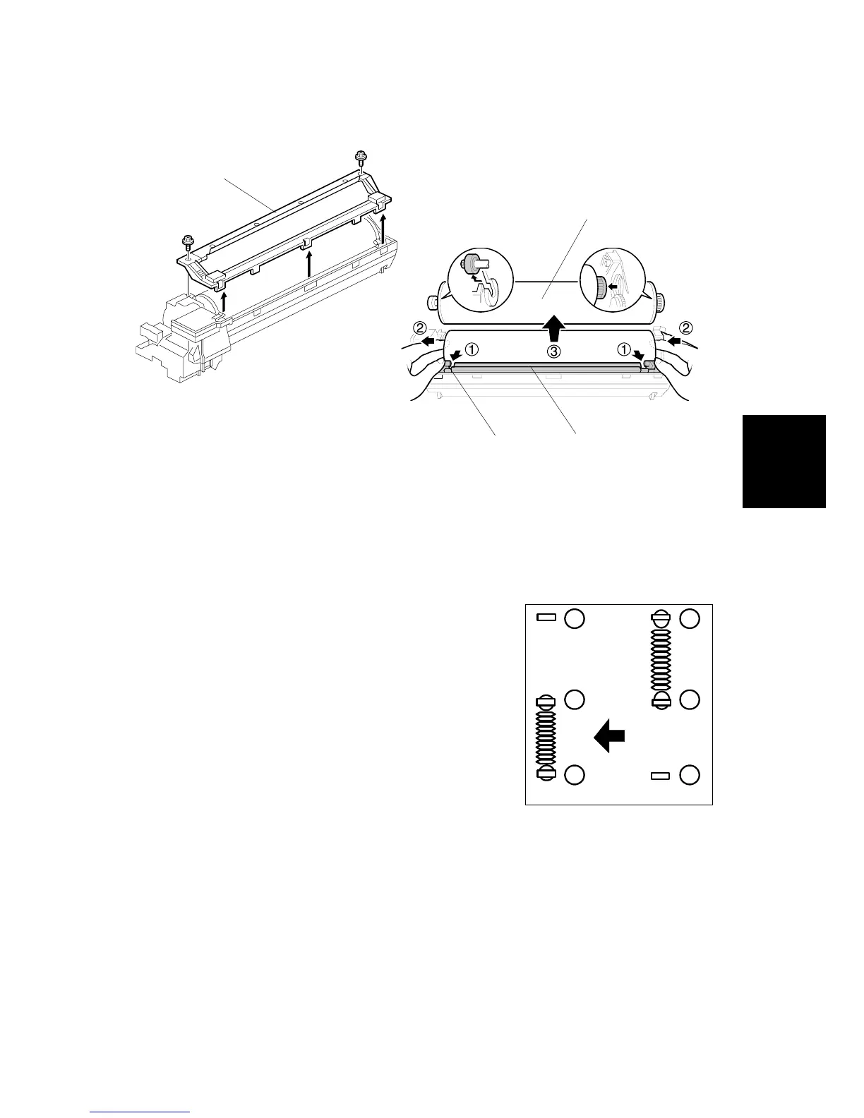 7. Pull the drum [B] towards the front $ (the left side in the illustration) while
