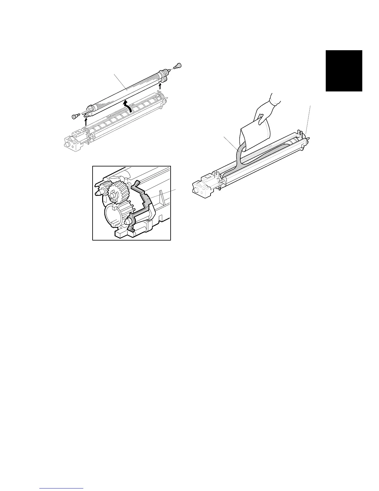 4) Continue to turn the drive gear until the developer is even with the top of the