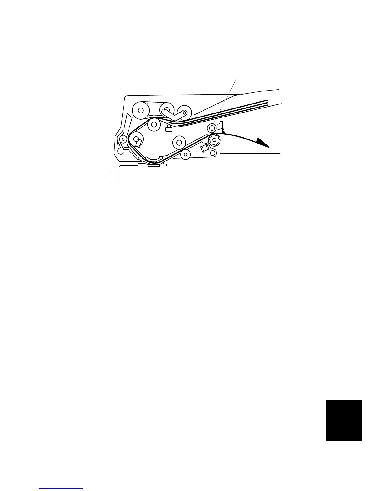 fed through to the 2nd transport roller [C] and fed out by the exit roller [D].
