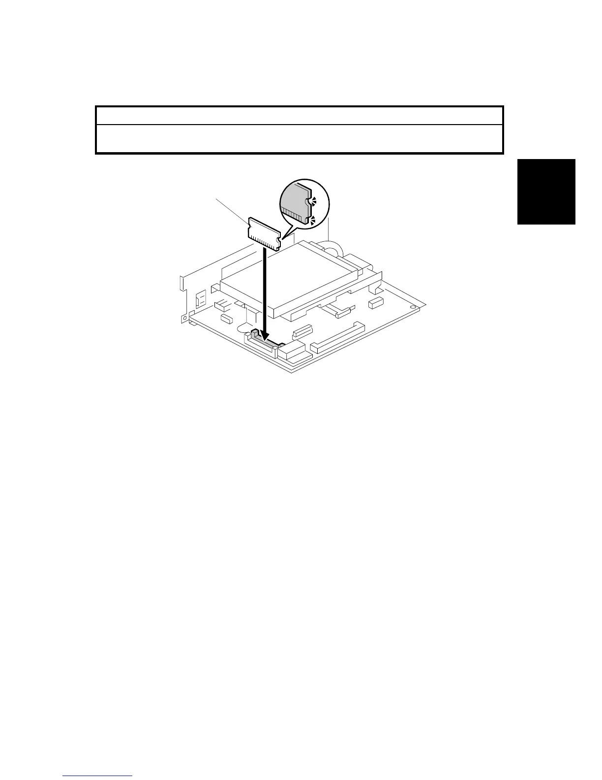 2. Install the printer ROM DIMM [A] in the inside slot of the controller board.