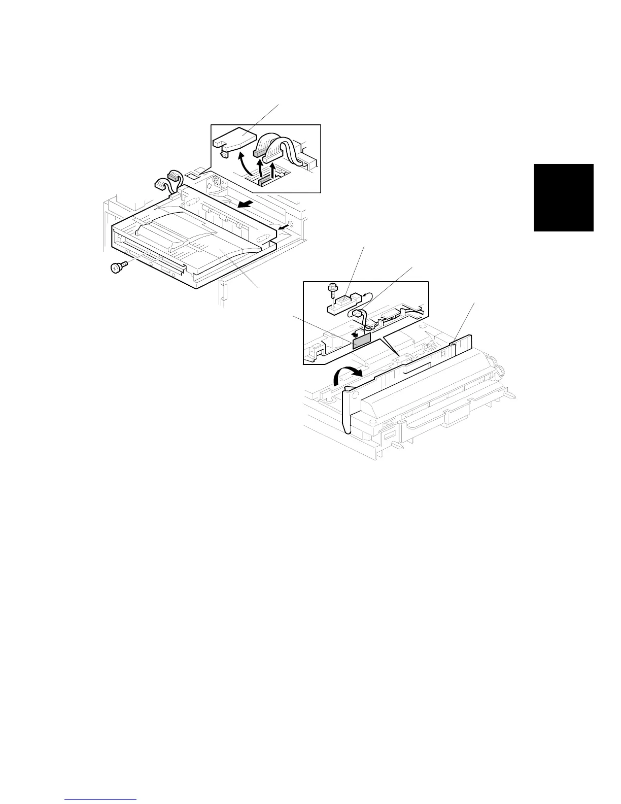 4. Install the paper sensor [F] ( x 1, x 1) then reinstall the bridge unit.