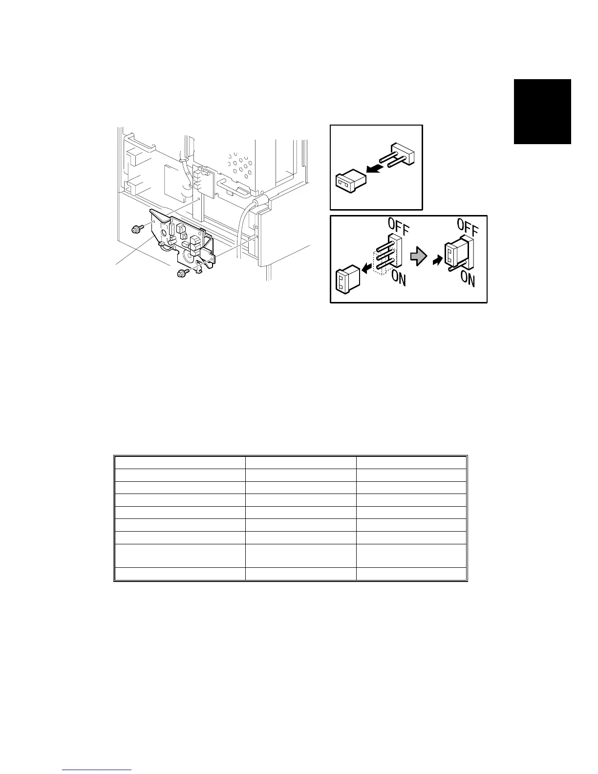 TB1 ON: Keep the jumper attached. OFF: Remove the jumper.