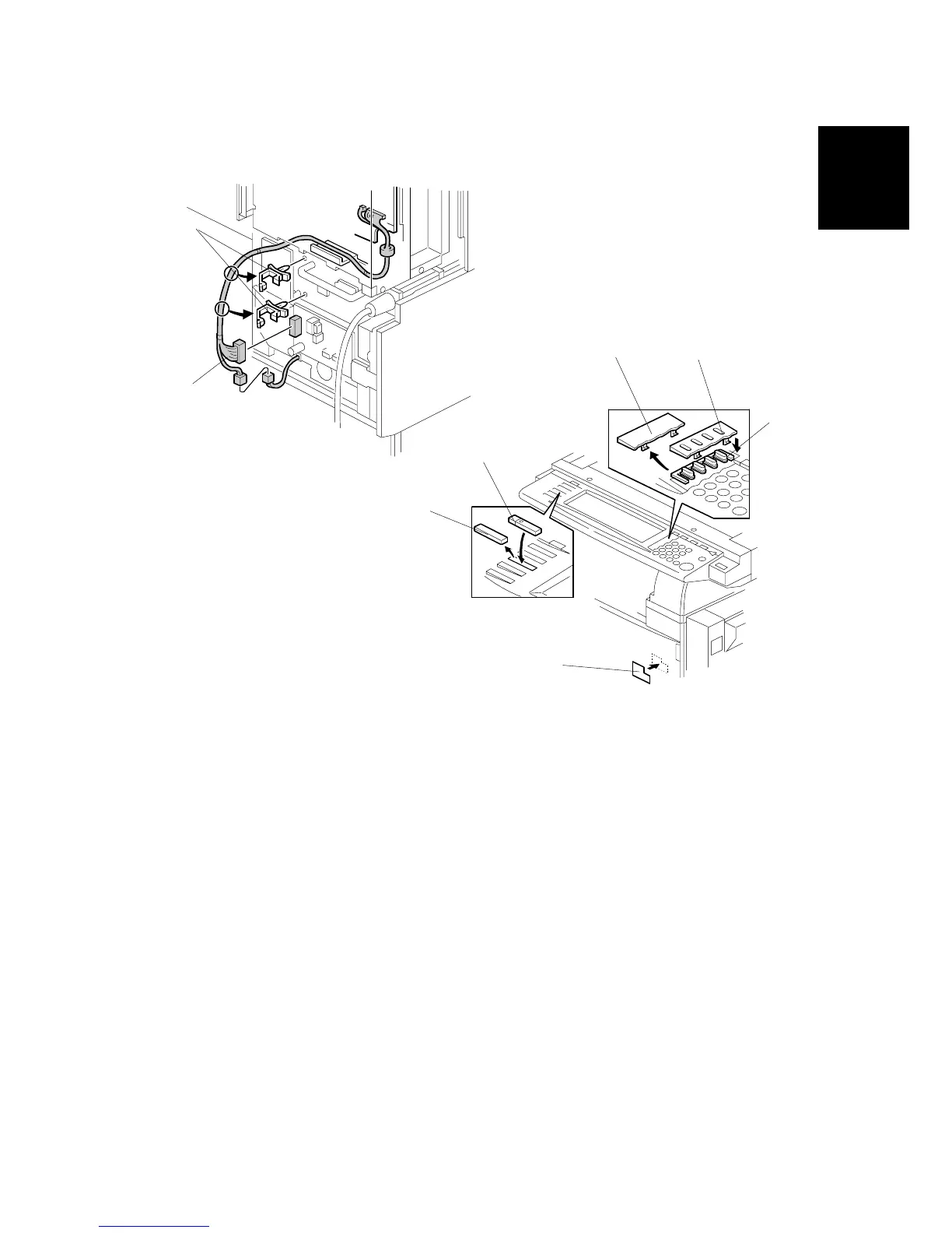 12. Attach the harness clamps [A] and connect the FCU harness [B] to the NCU
