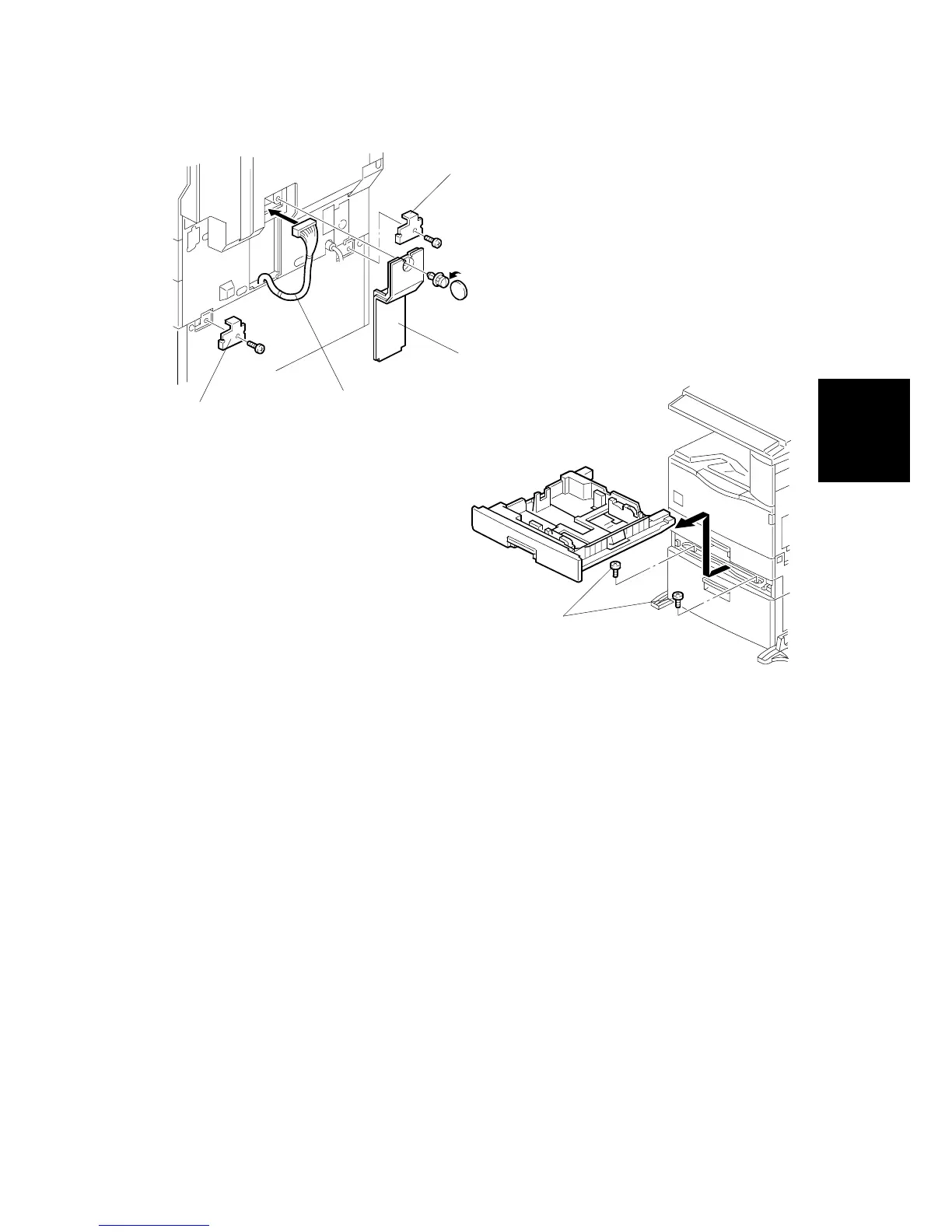 7. Remove the 2nd paper tray and secure the LCT [D] ( x 2).