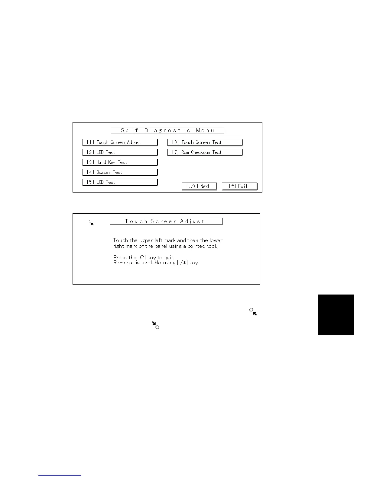 7. Touch [#] Exit on the screen to close the Self-Diagnostic menu and save the