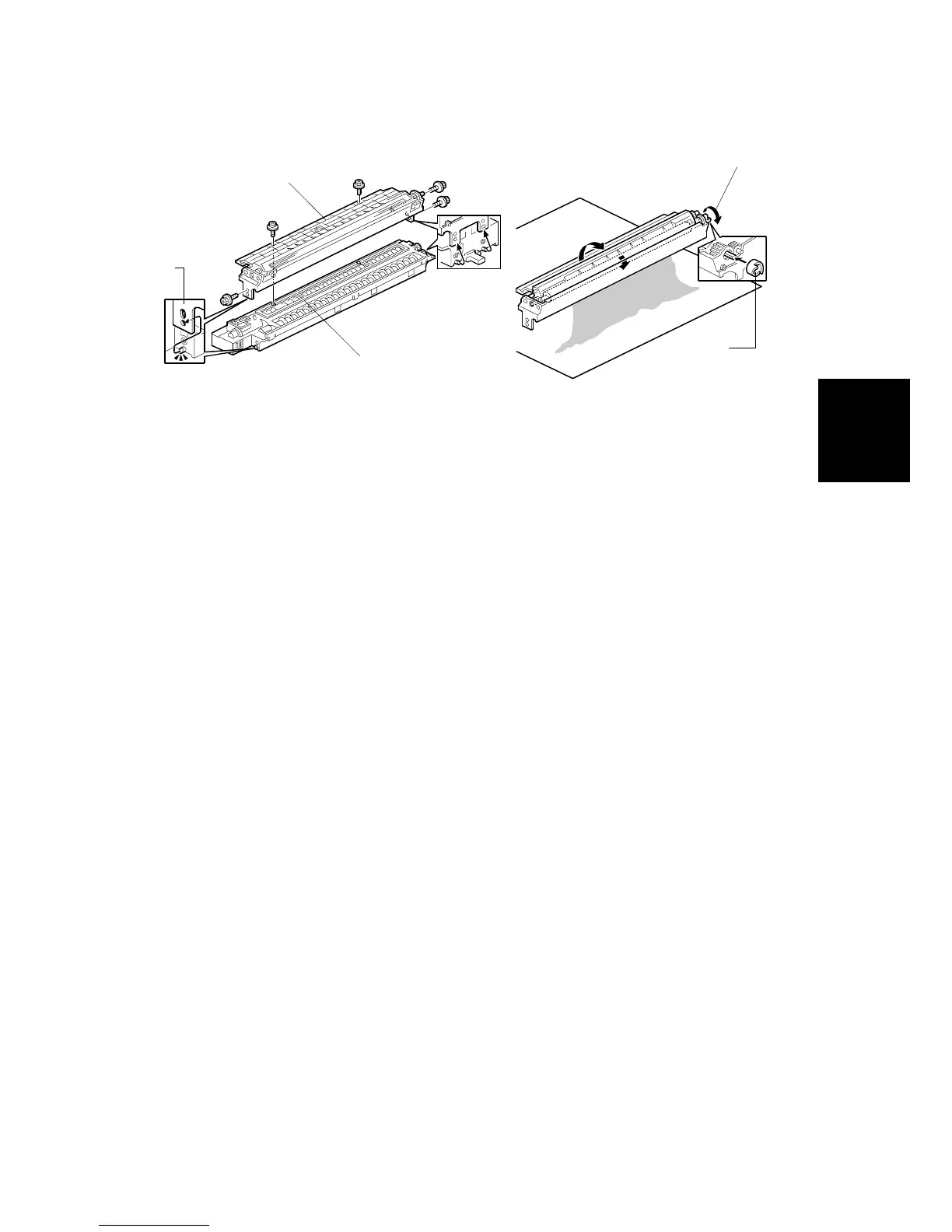8. Separate the developer section from the OPC drum section ( 3.6.3).
