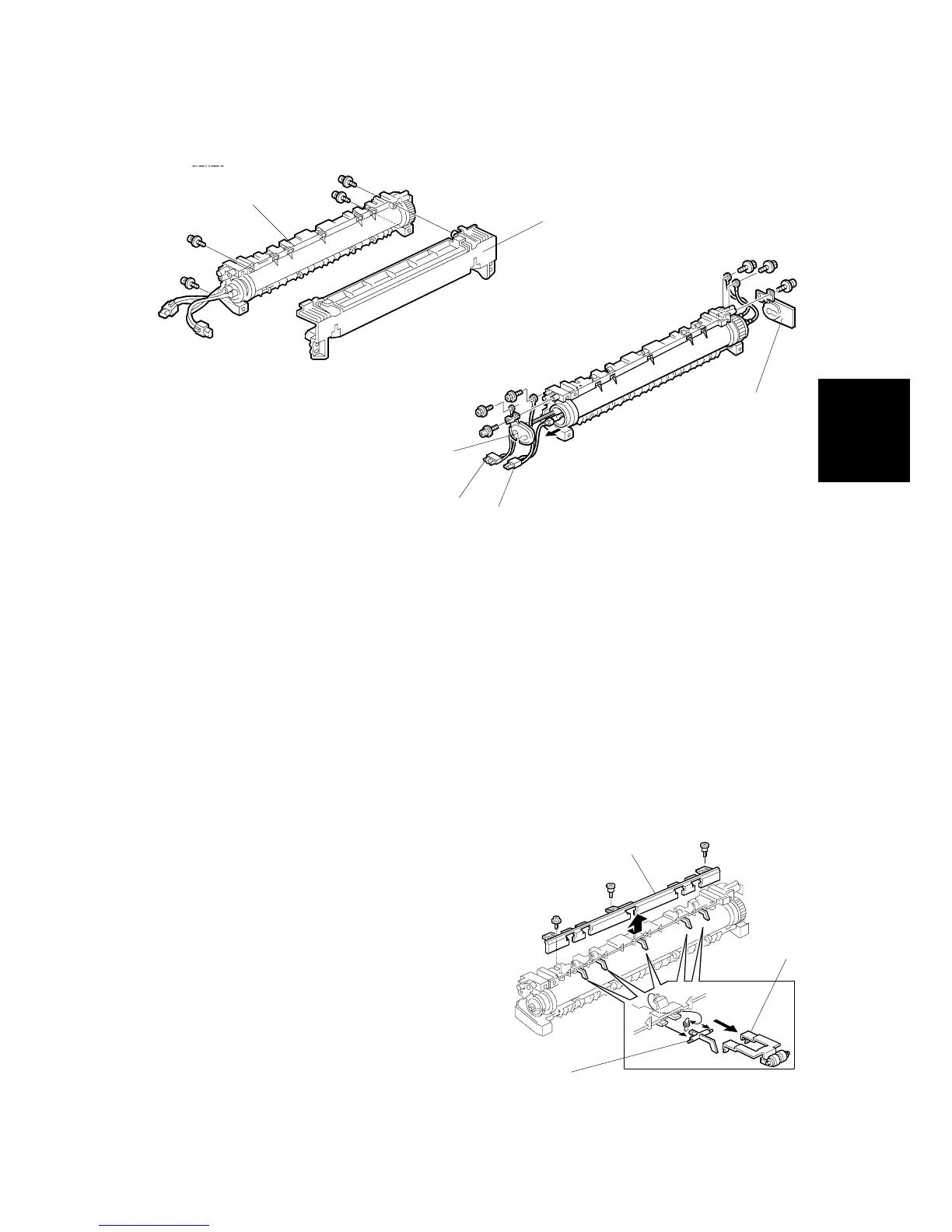 2. Separate the hot roller section [A] from the pressure roller section [B] ( x 4).
