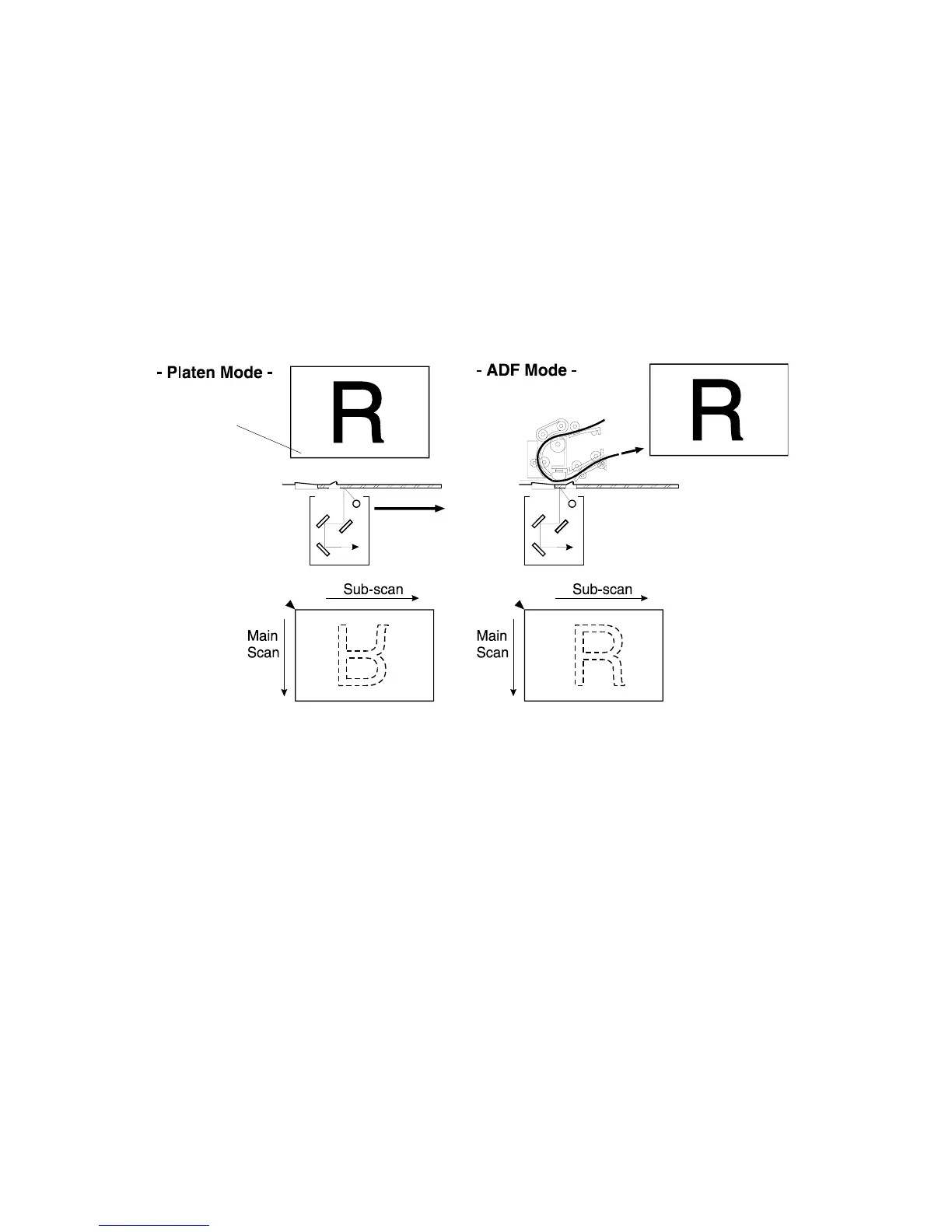 scan start position is at corner [A], and the scanner moves down the page. In ADF