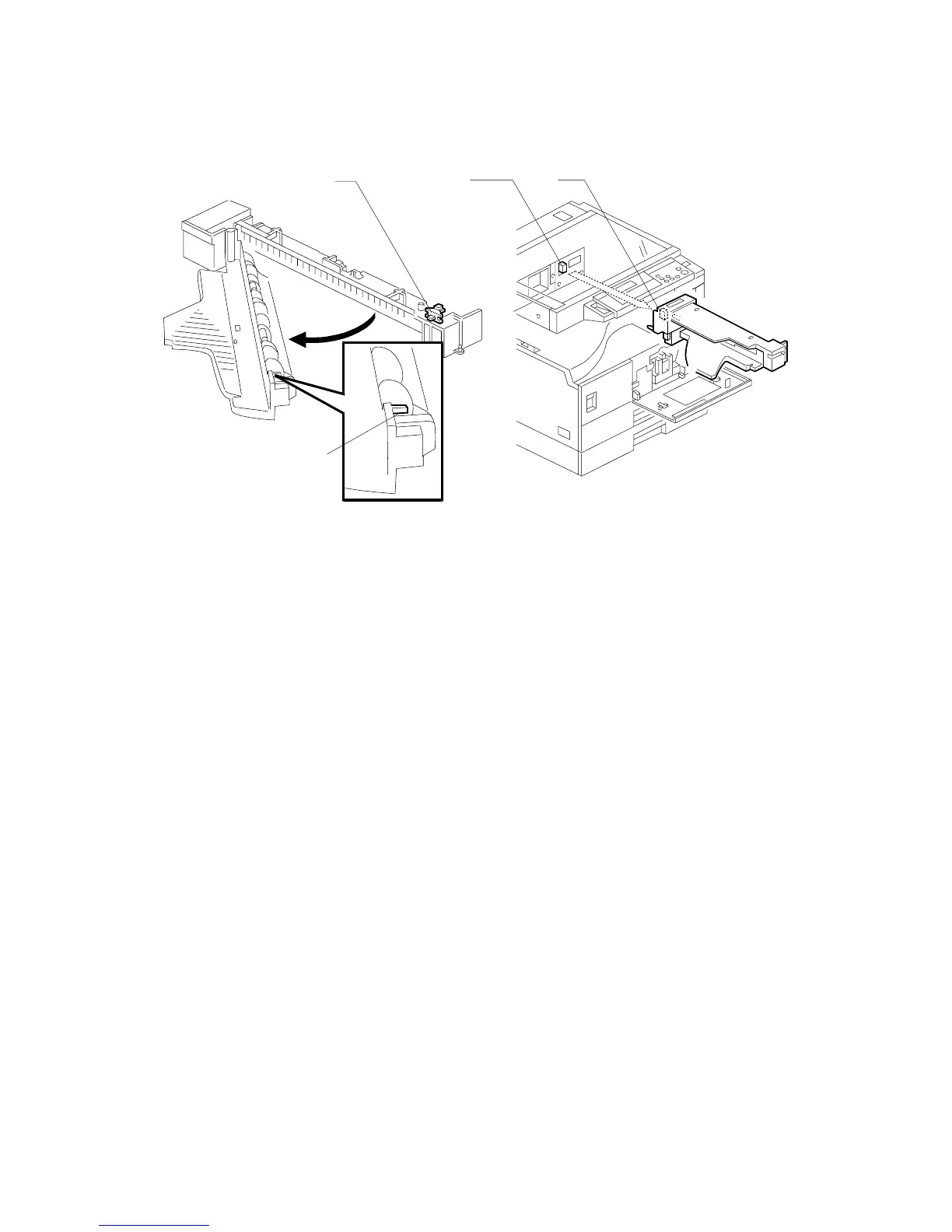 tray base unit [C] disconnects from the connector of the copier [B]. In this case, the