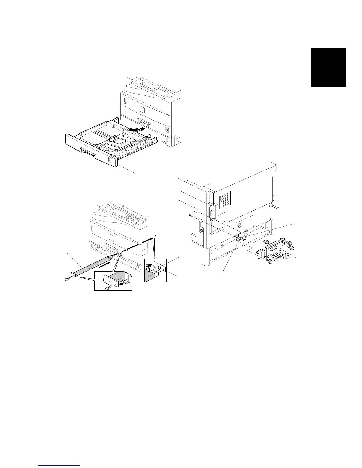 6. Reinstall the 2nd tray cassette, DCB, and rear lower cover.