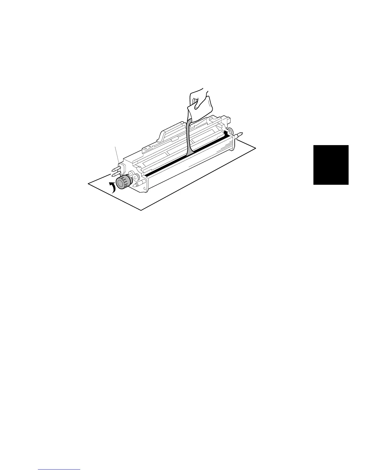 8. While turning knob [A] pour in one pack of developer evenly across the width of